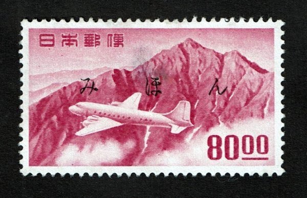 みほん字入り 1952年 航空切手 立山航空(銭位) 80.00円 糊落ち