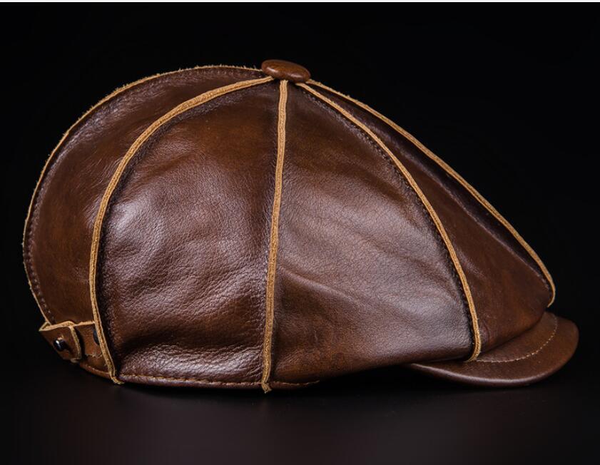 人気新品大人 オシャレ レトロ 復古 ベレー帽 レザーハンチング帽 牛革 キャスケット ハンチング 帽子 メンズ 大きめ 57~58cm コーヒー色