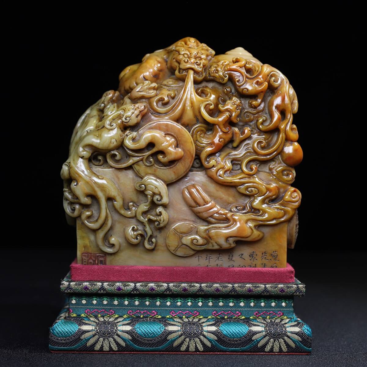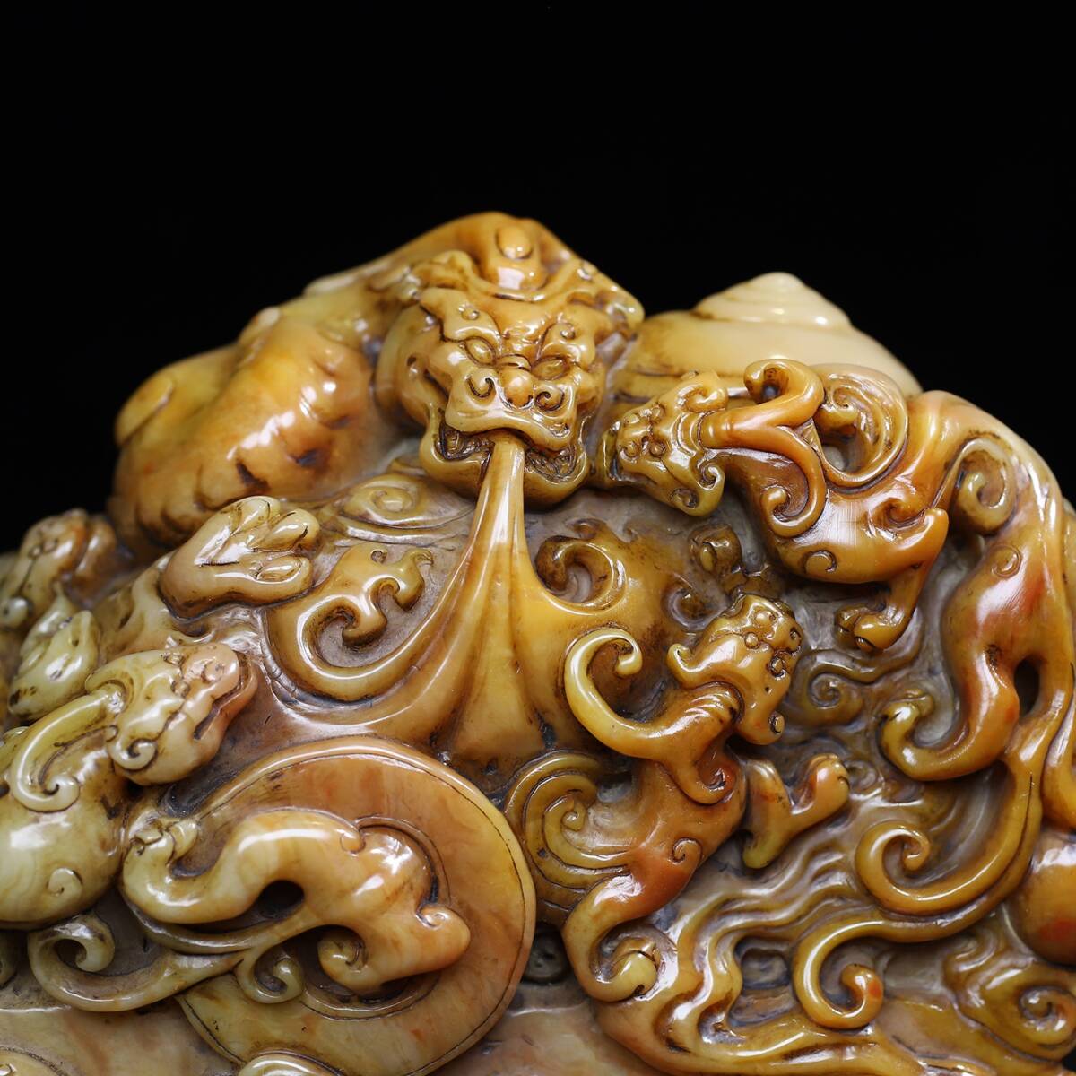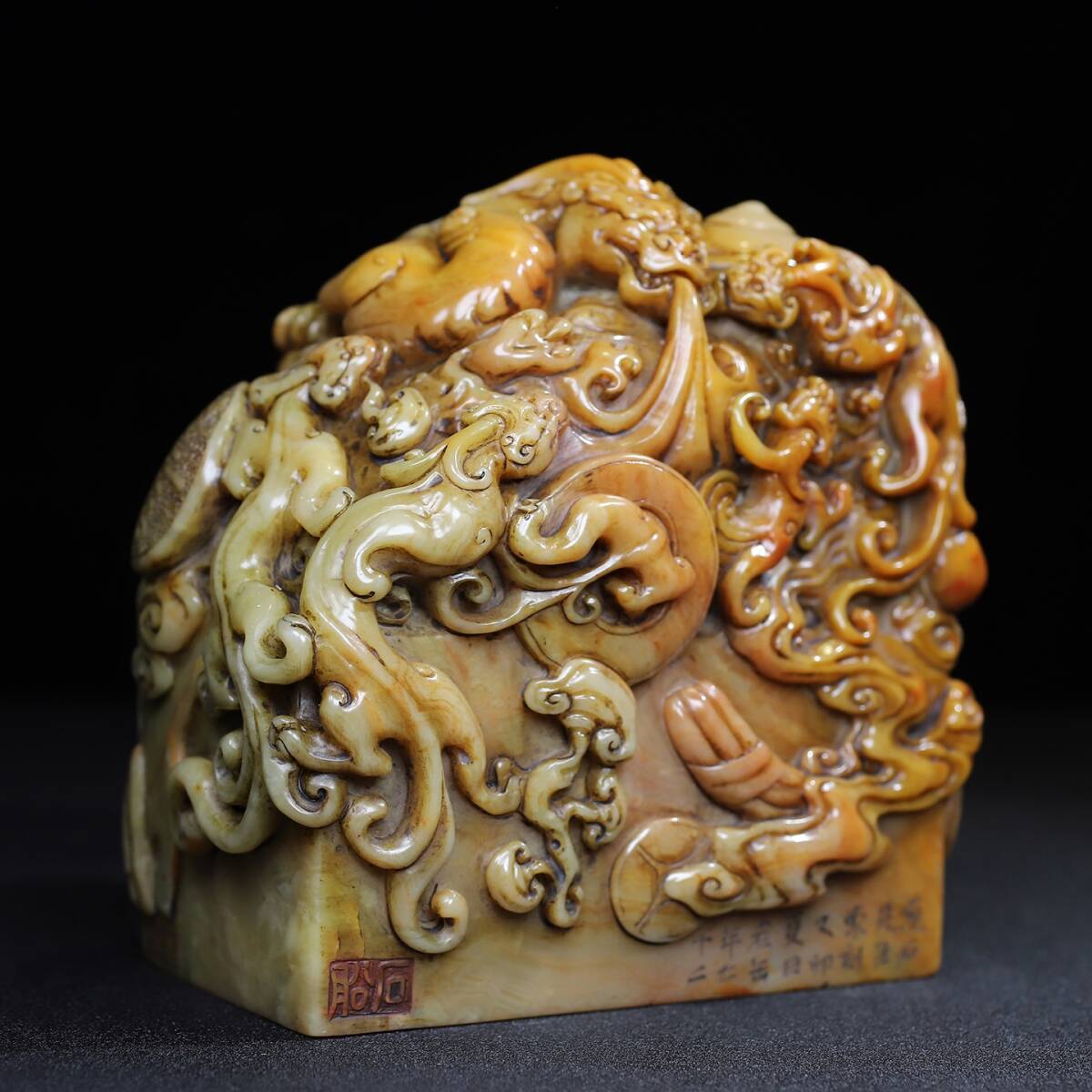 旧蔵 【清代篆刻家 呉昌碩 号:老缶】寿山石 彫刻 キレート龍獻壽 印章 天然石 手彫 篆刻 古印材 極細工 中国古玩 骨董品 古美味 206-21