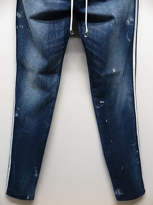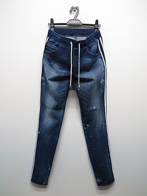 RESOUND CLOTHING(リサウンドクロージング) EX denim jersey BLIND LINE PT/DIND 定価 35,200円(税込) RC34-ST-008D-DIND QUALITY COTTON91% PU9% SIZE 1 ウエスト 74~80 cm 股上 24.5 cm 股下 70.5 cm 渡り 26 cm 裾巾 11 cm made in Japan |