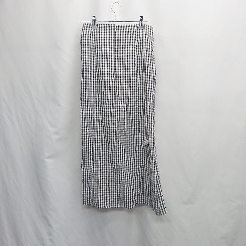 ◇ ⊂ マーキュリーデュオ リングベルト風調節有 ギンガム ロング フレア スカート サイズM ホワイト系 レディース E