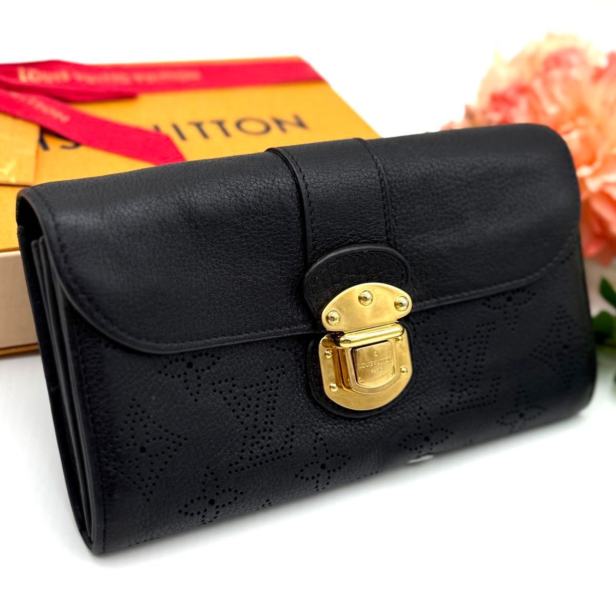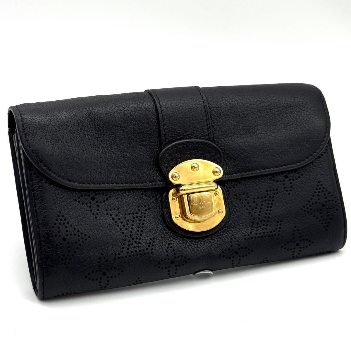 LOUIS VUITTON ルイヴィトン モノグラム マヒナ イリス ブラック ゴールド 長財布 L23