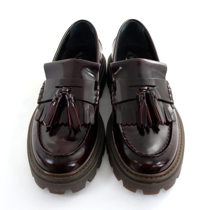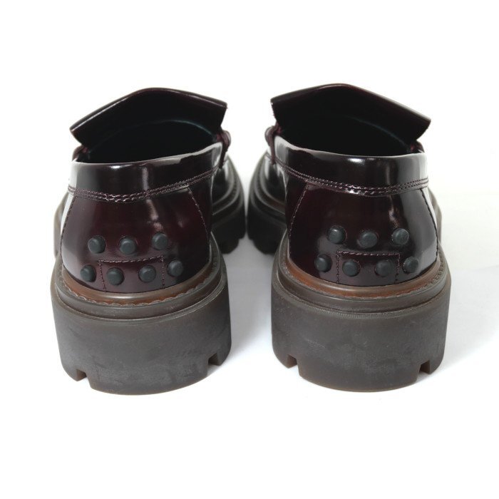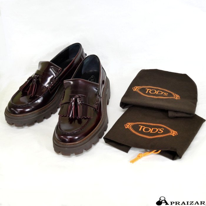 | TODS トッズ レザー 厚底 エナメル タッセル ローファー 36 エンジ ヒール約4cm 収納袋付 です。 艶感のある上質エナメルにタッセルがエレガントなローファーです。ヒールにはアイコニックなラバーぺブルを合わせました。厚底ソールがコーディネートをランクアップしてくれます。 あまり使用感のない綺麗な商品です。皆様のご落札をお待ちしております。 |