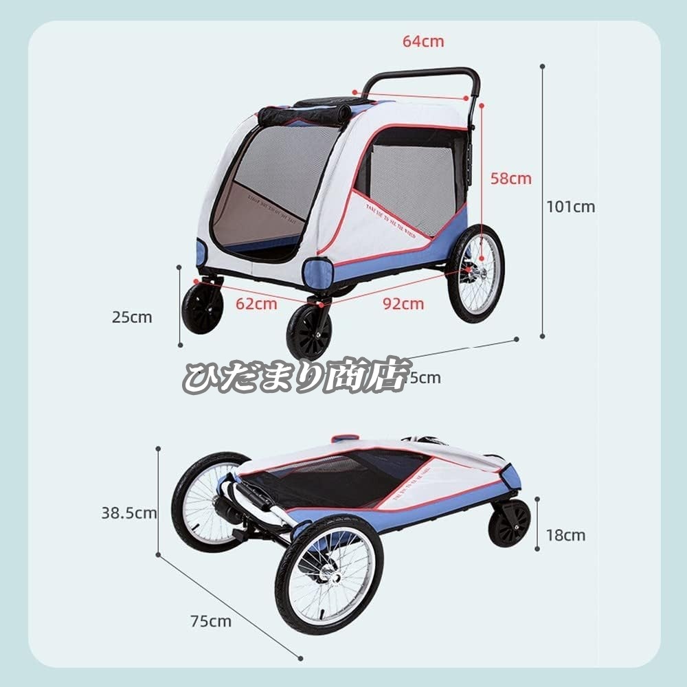 ◆【対象】小型・中型犬・大型犬(80kg以下での使用を推奨)・商品サイズ・長さ:115cm・幅75cm・高さ101cm,台車重量:15KG、前輪径:18cm、後輪径:38.5cm。