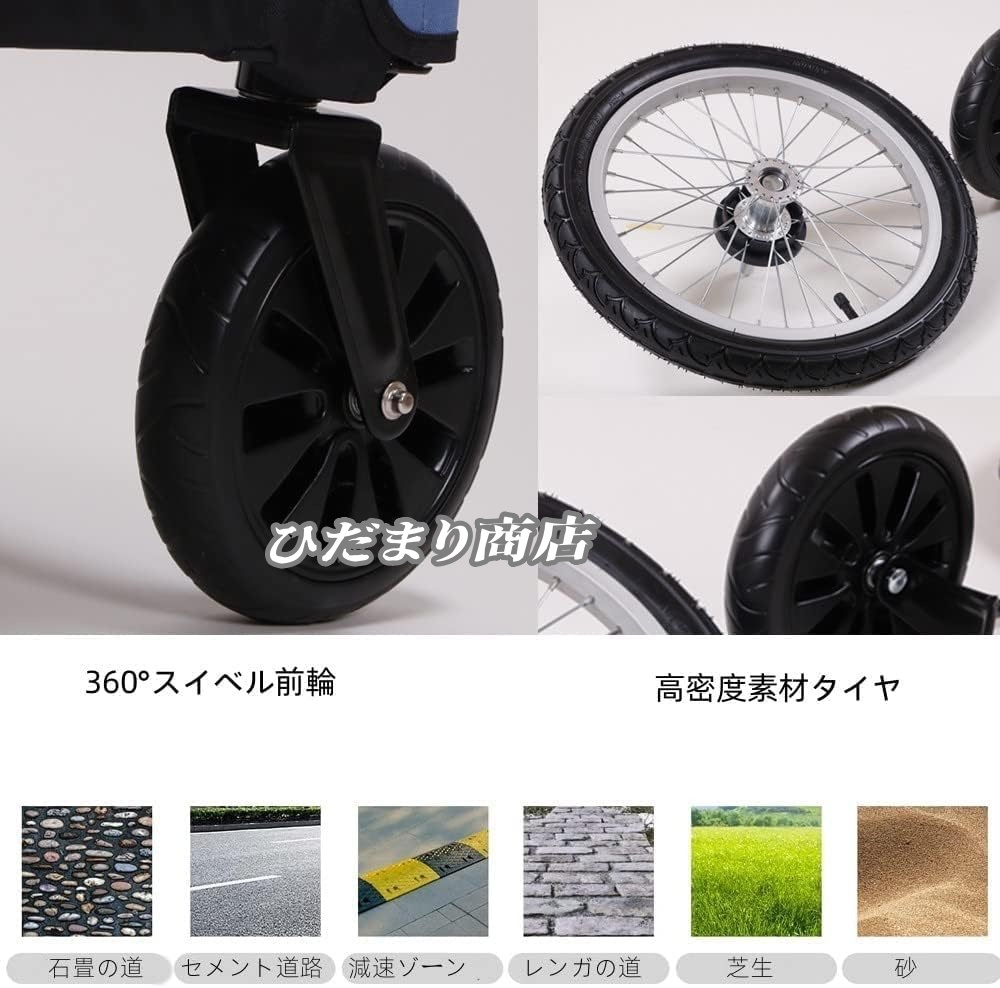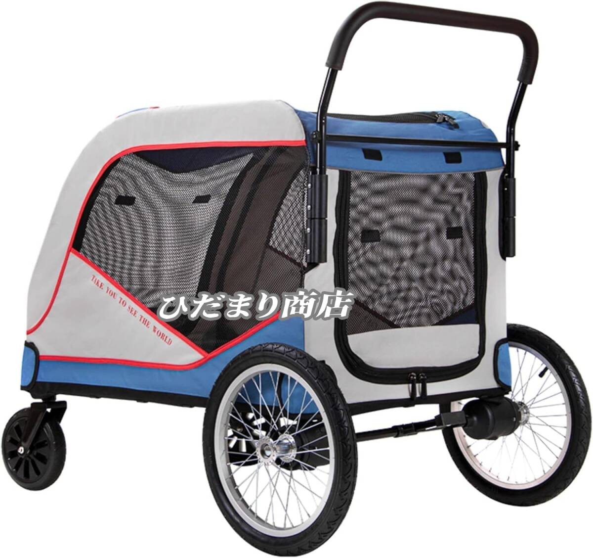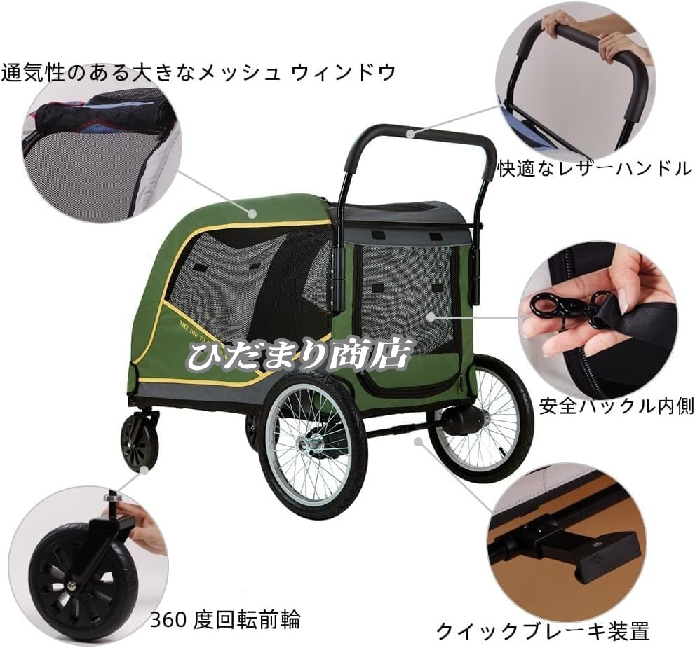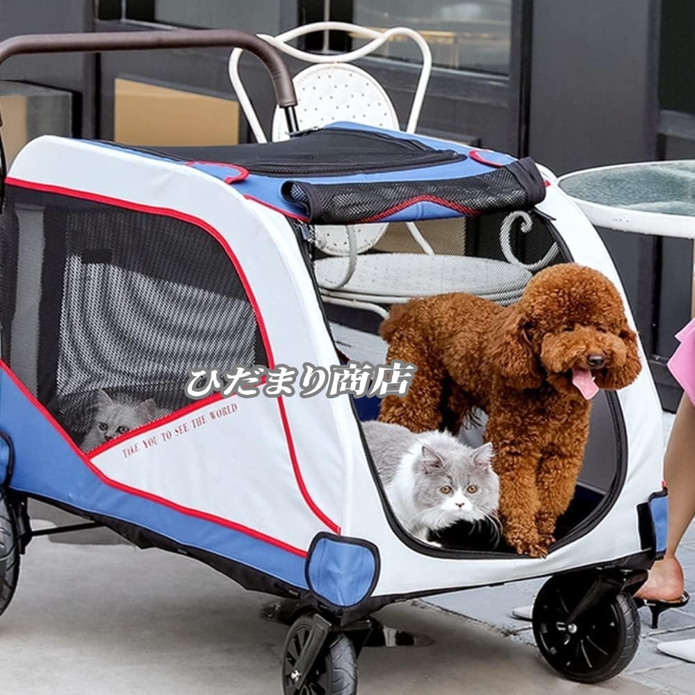 犬用カート 大型犬 ペットカート 多頭中小型犬・猫 多頭用 四輪 前後で入り可能 ポケット付き 組み立て簡単 耐荷重80Kg
