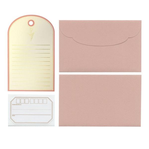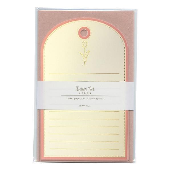 【即決】▽レターセット タグ ピンク▽ Z&K 手紙 便箋 封筒 花柄 フラワー 箔押し シンプル 淡い 宛名シール付き メッセージ // 63-048