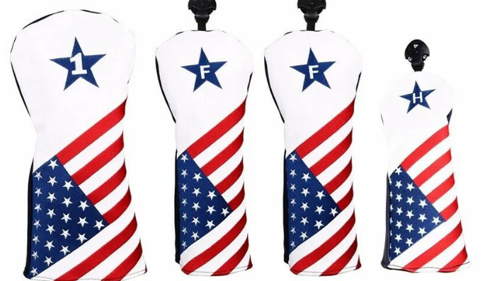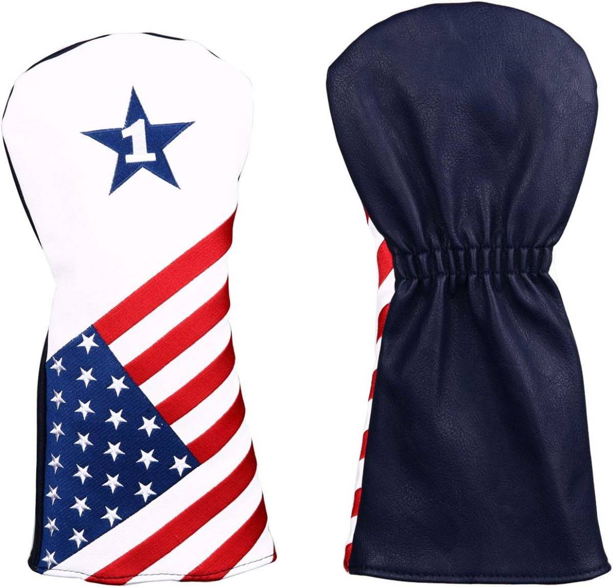 ドライバー/ウッド/ユーティリティ/DR用/FW用/UT用/ 米国旗柄 スター ヘッドカバー 変換ダグ付き 1個