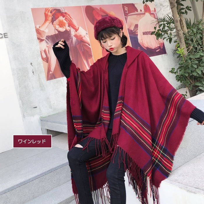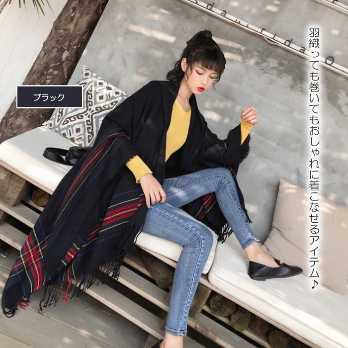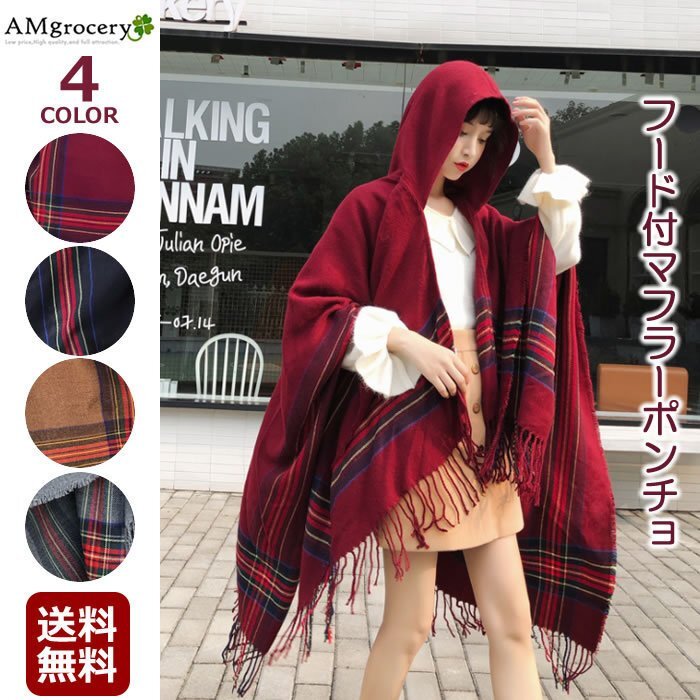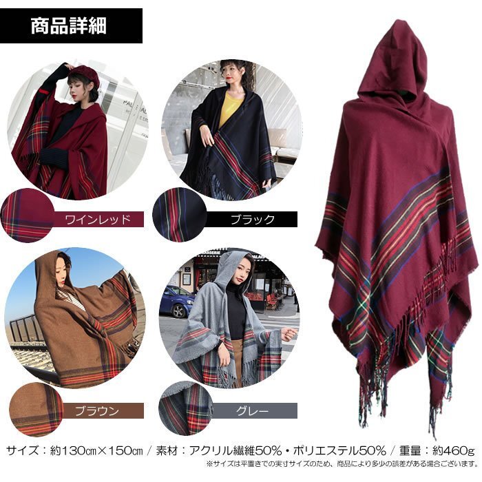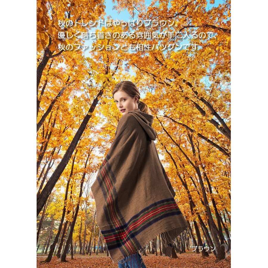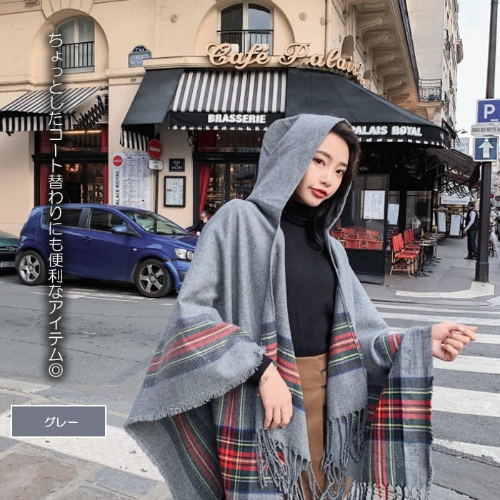 ポンチョ フード付き ストール 大判 ケープ フード付き 秋冬 チェック タータンチェック マント コート 授乳ケープ 大きい レディース チェック