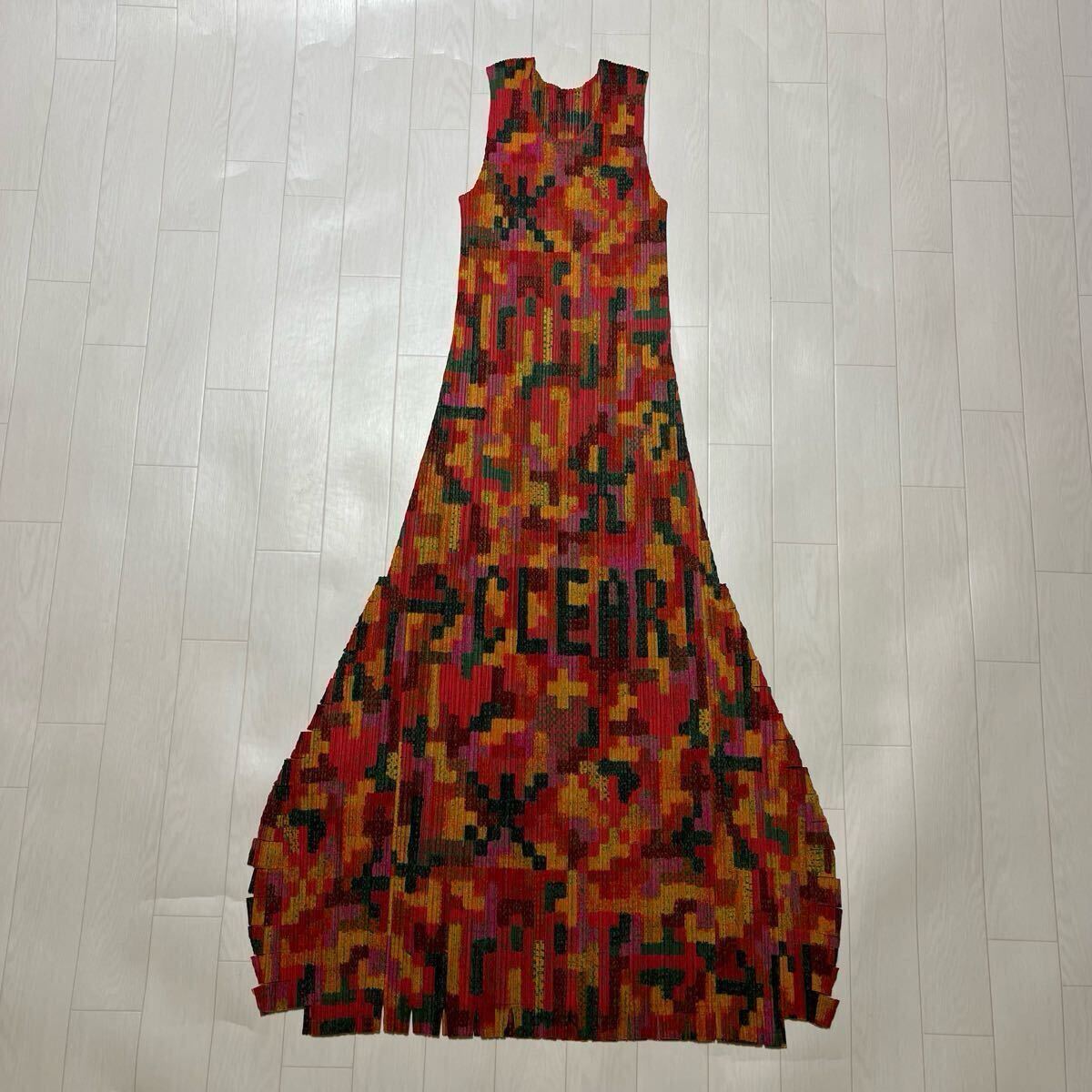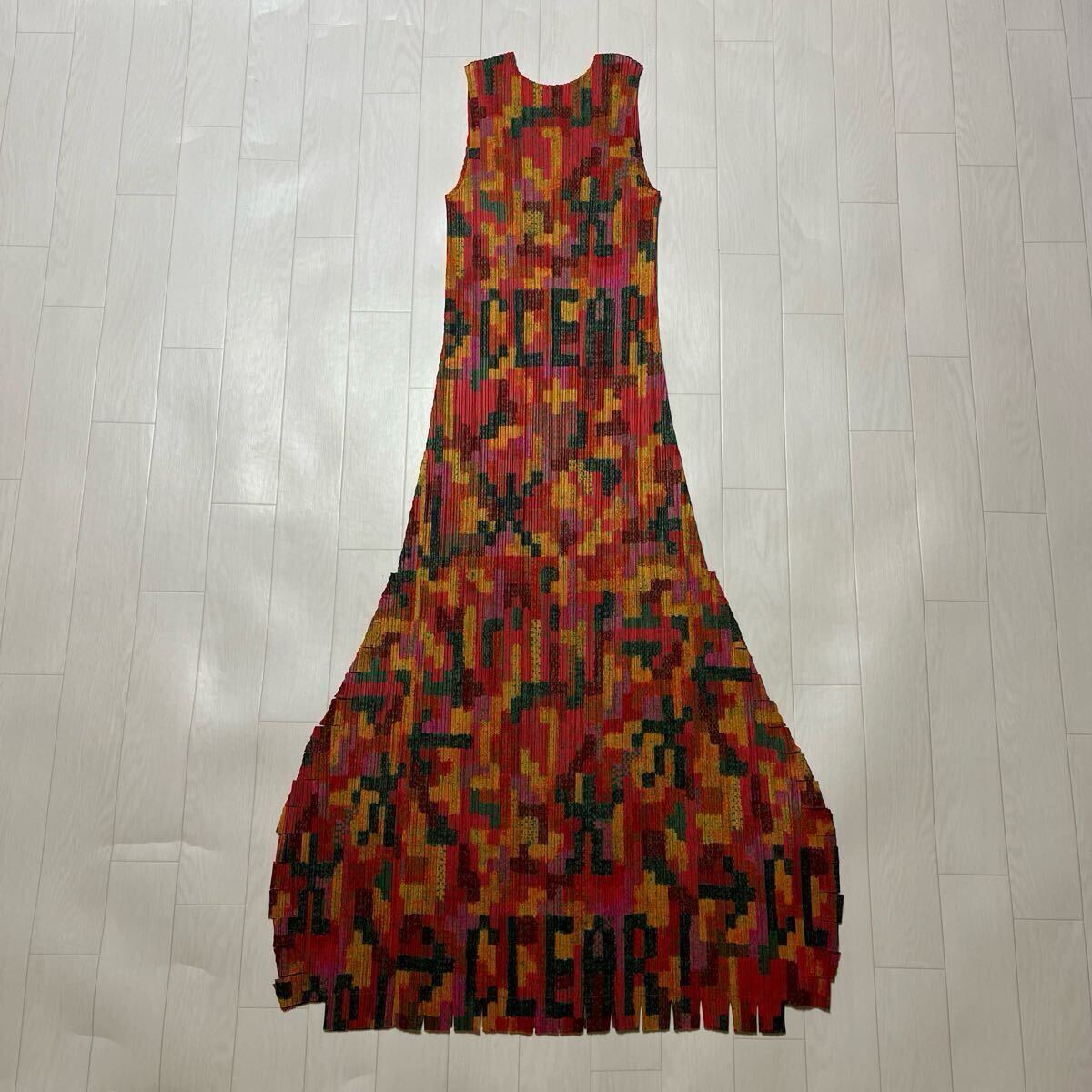 美品 プリーツプリーズ イッセイミヤケ ノースリーブ ロングワンピース CLEAR
