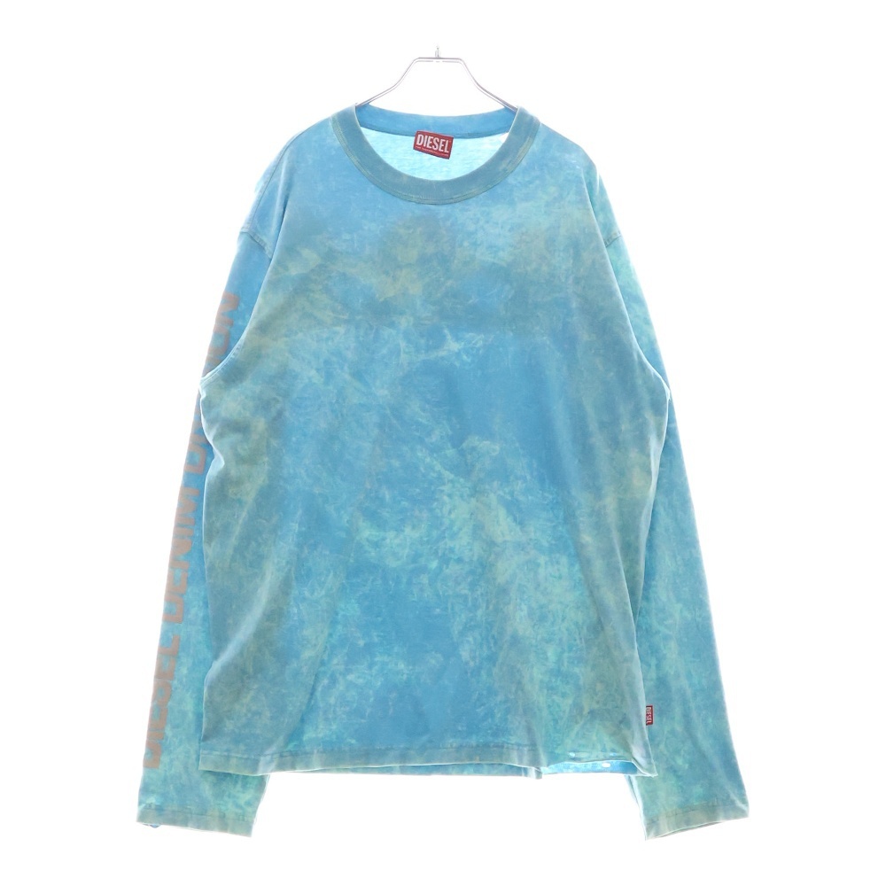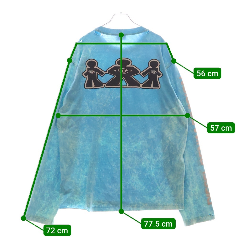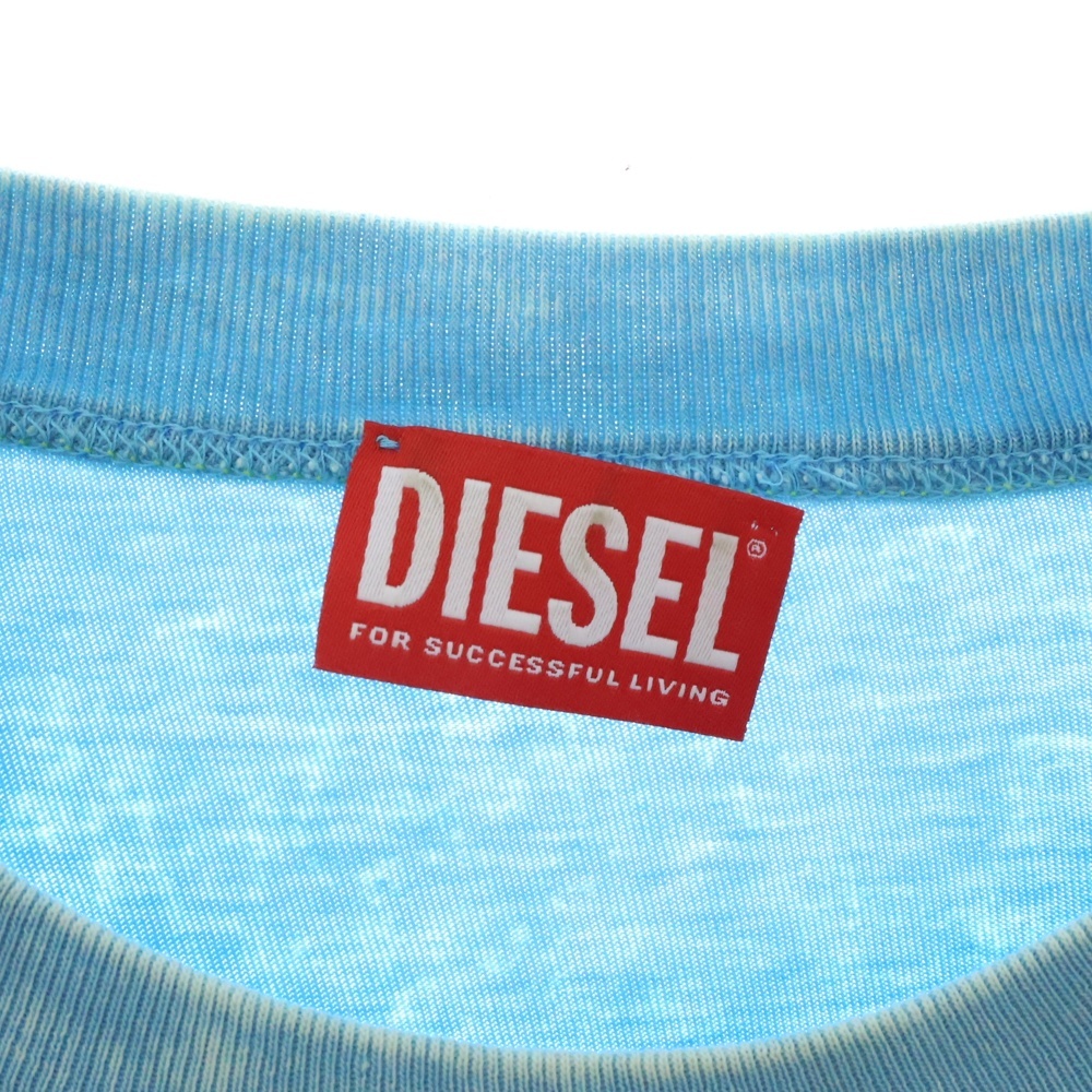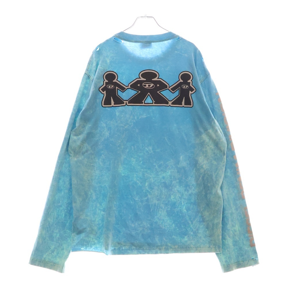 DIESEL ディーゼル ダメージ加工 プリント クルーネック 長袖Tシャツ カットソー ブルー