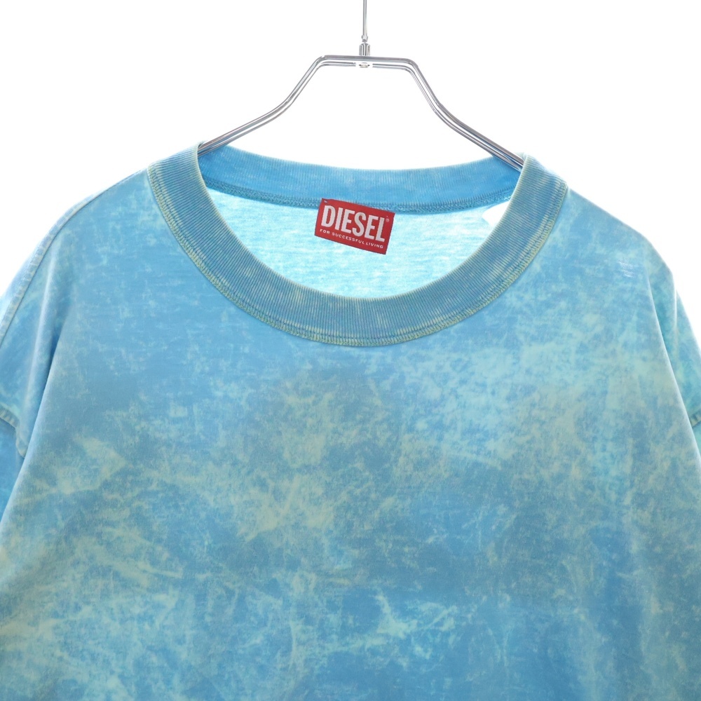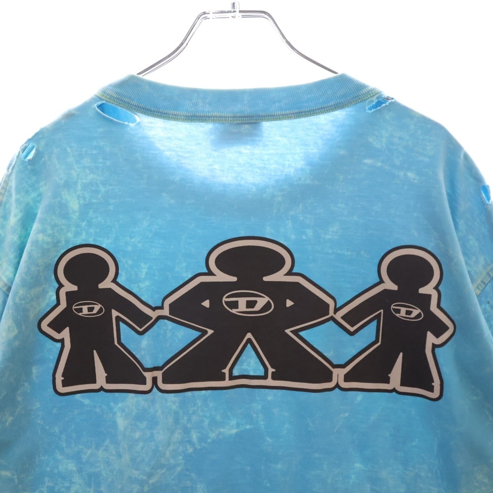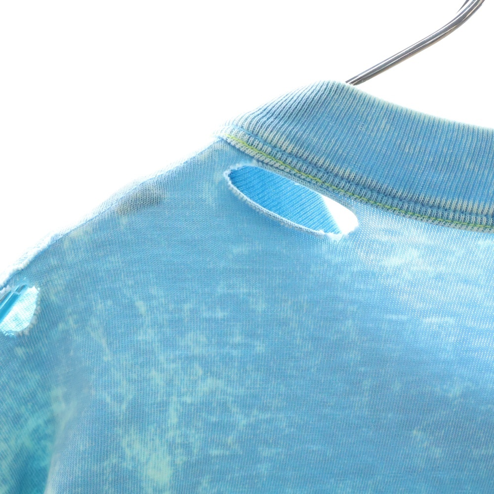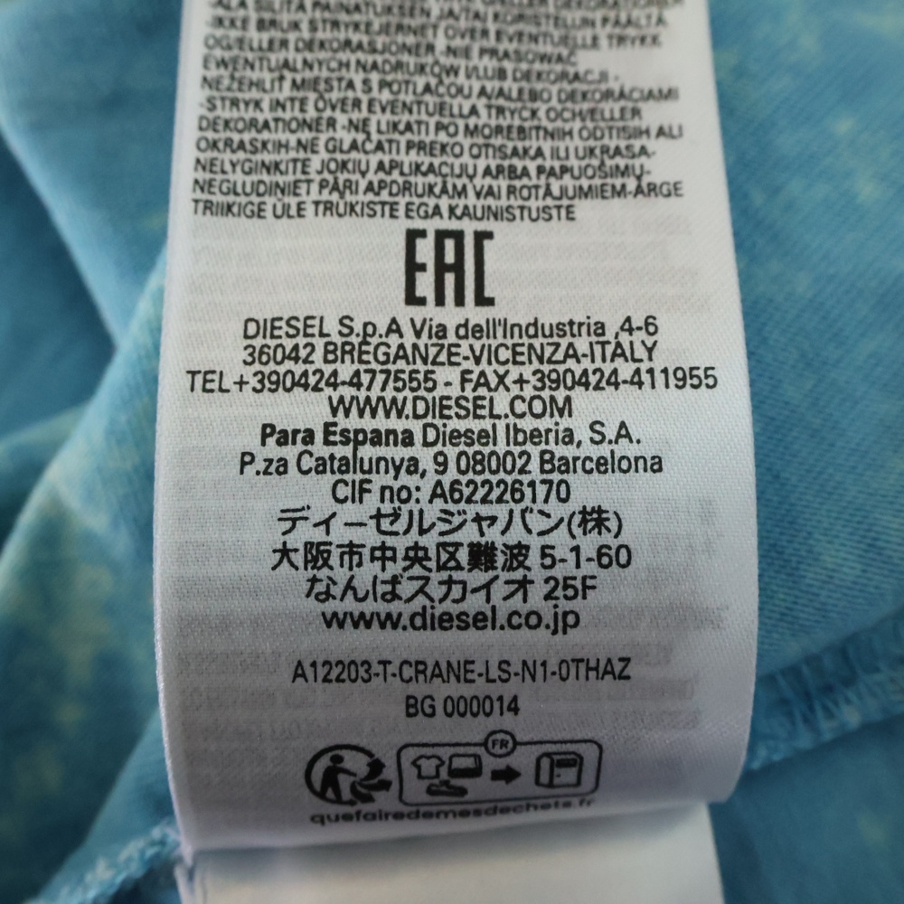 DIESEL ディーゼル ダメージ加工 プリント クルーネック 長袖Tシャツ カットソー ブルー