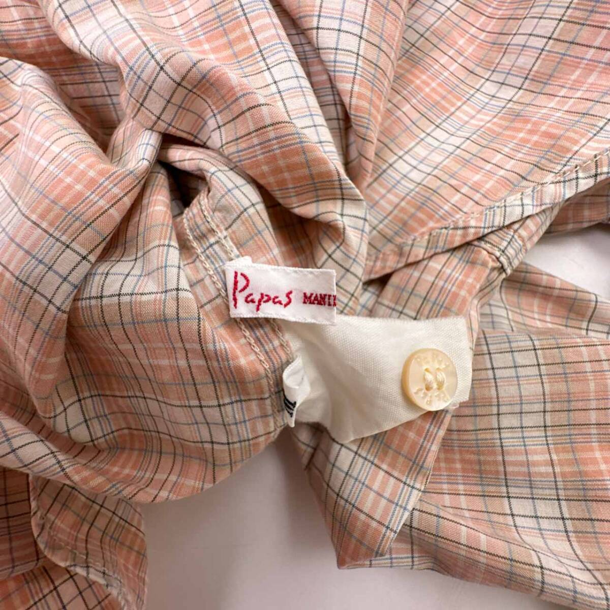 | 商品名 | Papas パパス チェック柄 長袖 シャツ M/サーモンピンク系 |