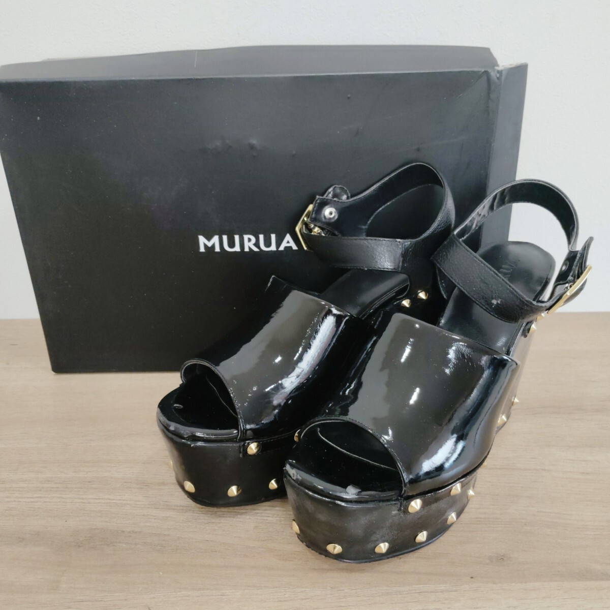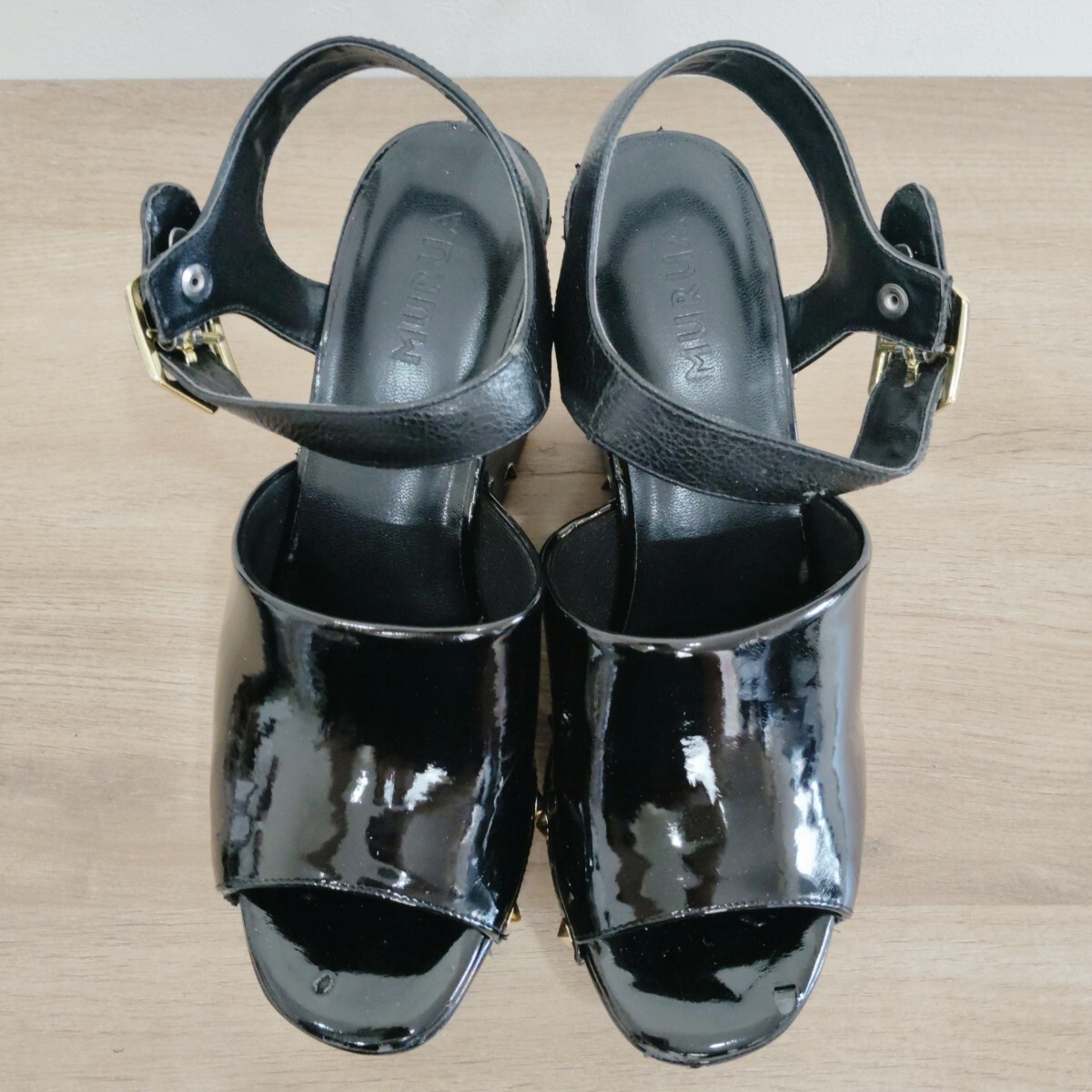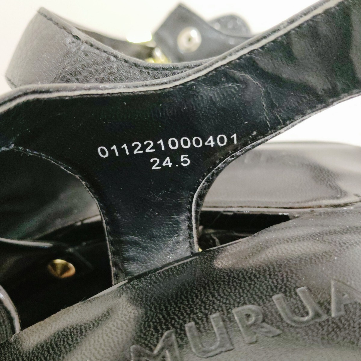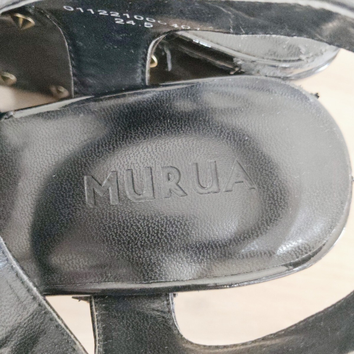 MURUA ミュール ヒール サンダル 24.5cm スタッズ エナメル ブラック レディース