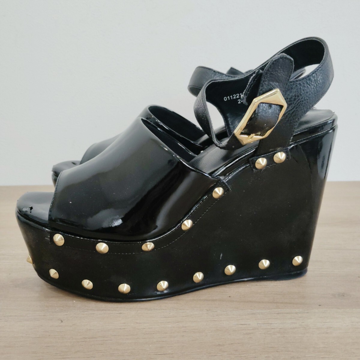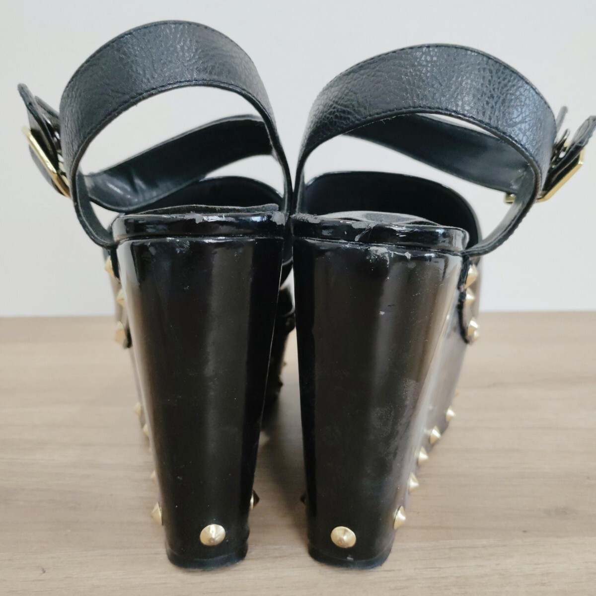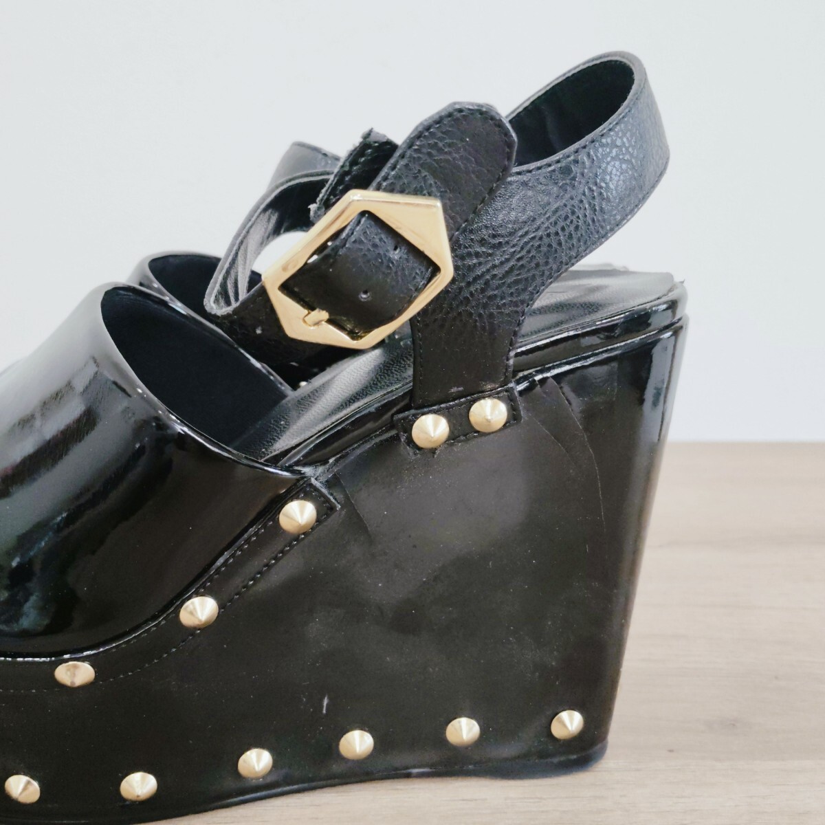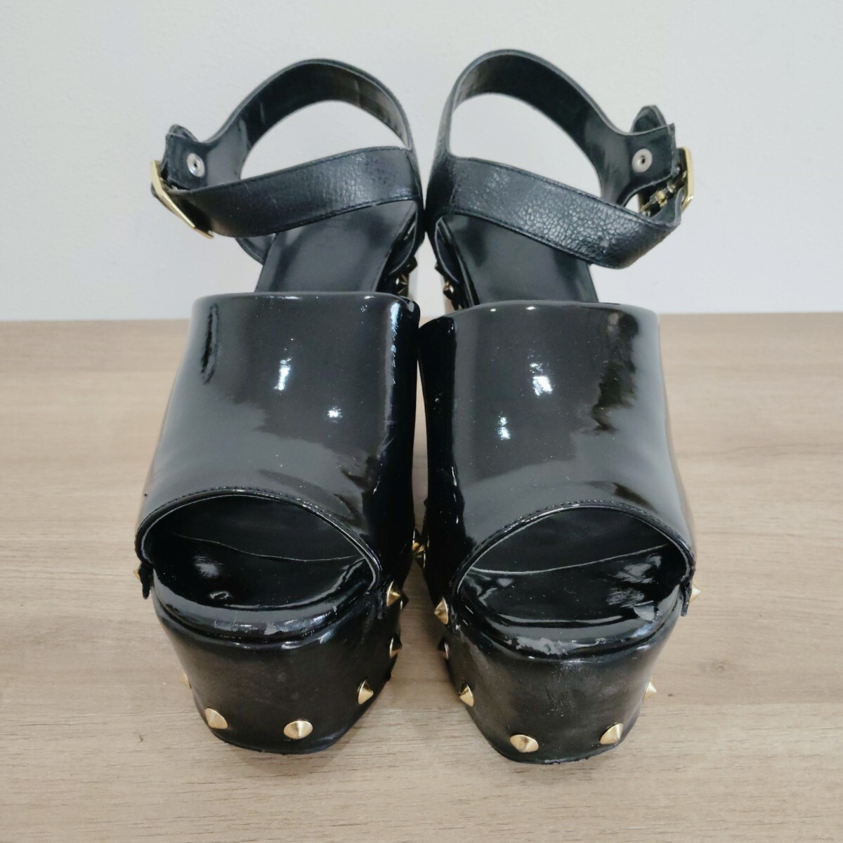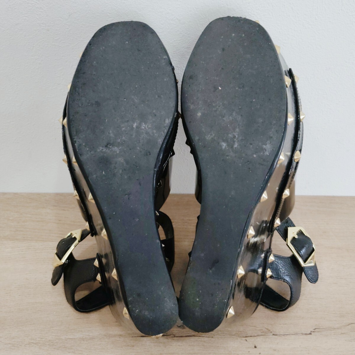 MURUA ミュール ヒール サンダル 24.5cm スタッズ エナメル ブラック レディース