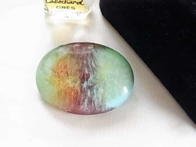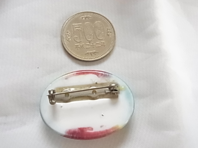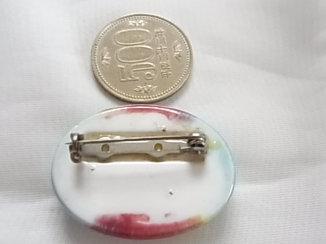 □ビンテージ/ヴィンテージ 焼き物系 七宝焼き? 九谷焼? 三彩焼き? グラデーションが美しい和モダン 昭和レトロの素敵なブローチ
