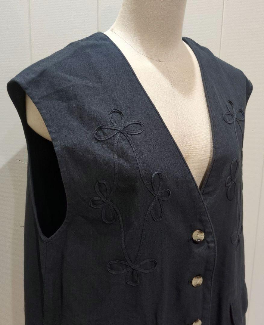 【商品名】コード刺繍 ベスト ジレ コットン100% レディース