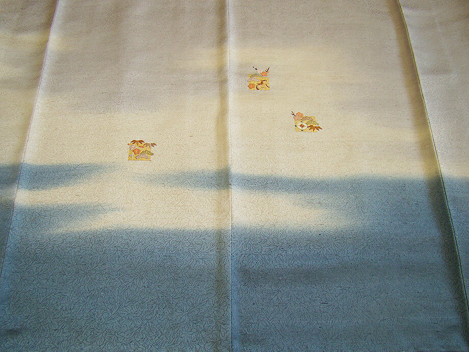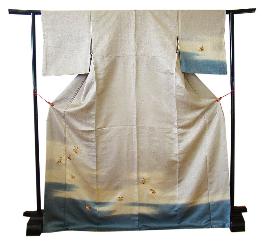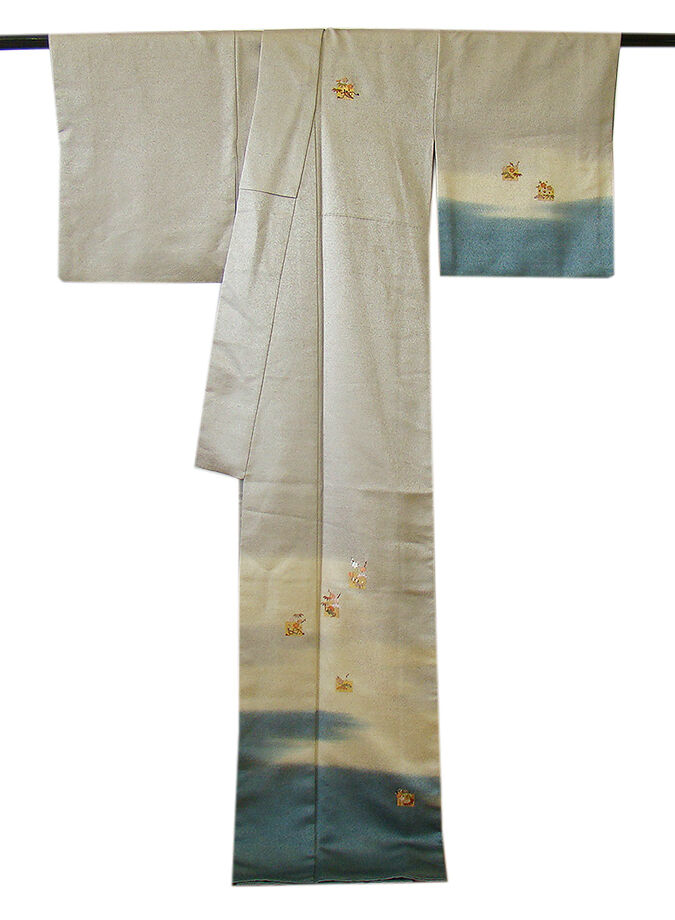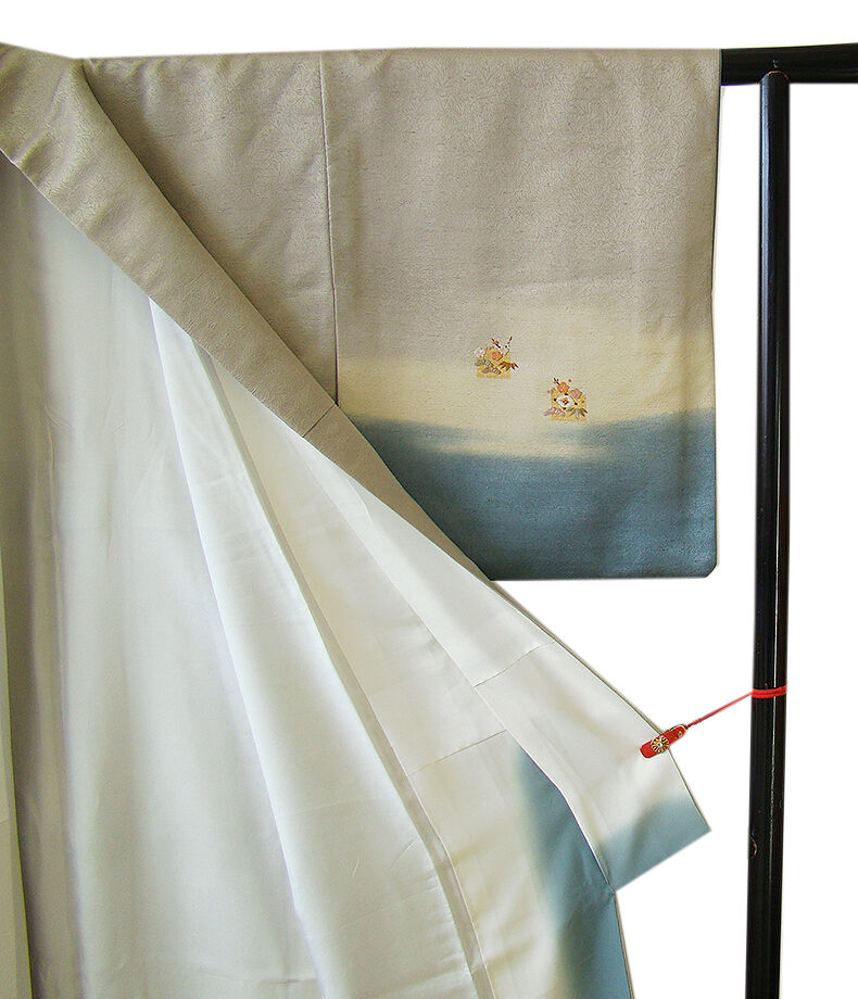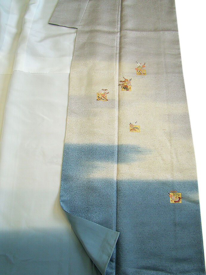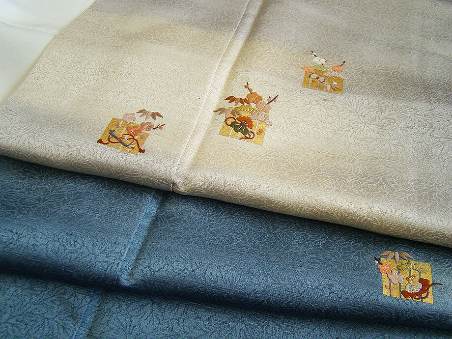 | 商品説明 | こちらのお品は「袷」ですので10月から5月までお召頂ければと思います。 とてもしなやかで柔らかな手触りの着心地良い重めの紋意匠地の生地、 絹鼠色地に裾にかけて紺鼠、クリーム色ぼかしに地模様入り、松竹梅や七宝文等の竹屋町刺繍、 気品に満ち溢れた彩りが正統派のお着物として一枚は欲しい逸品の素敵なお着物です。 八掛は灰青色(正絹)、幅広い年代の方にお召頂けます。 |