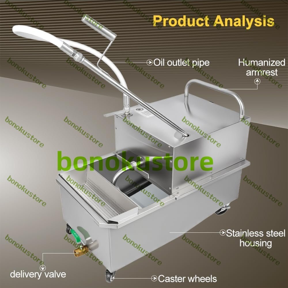 コマーシャルモバイルフライヤーオイルフィルターマシン-55リットル容量、550Wモーター、レストラン用の高速オイルろ過システム