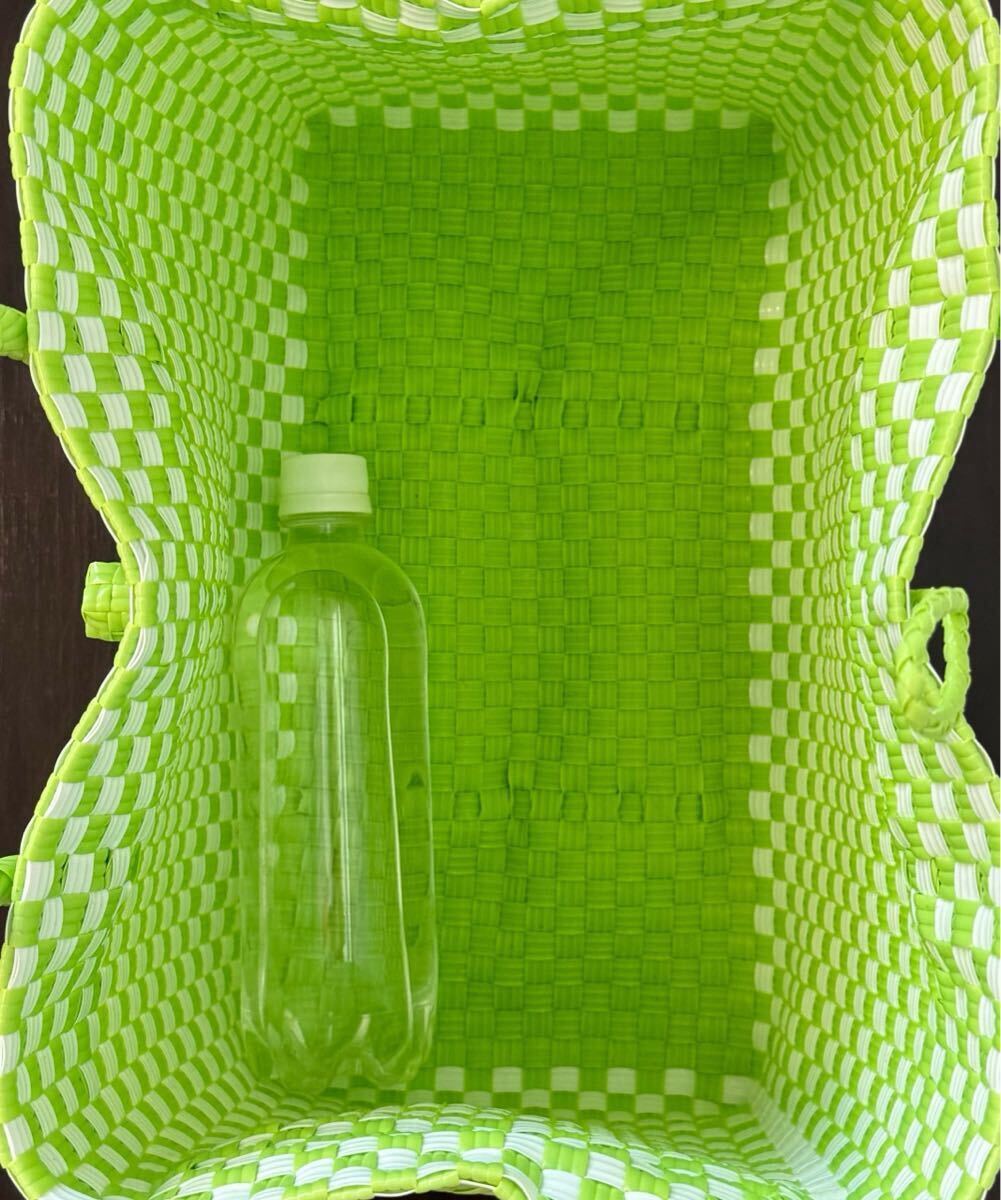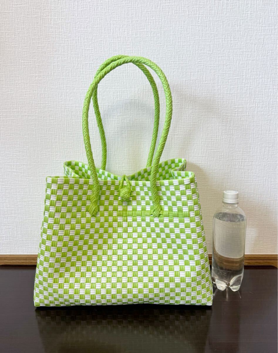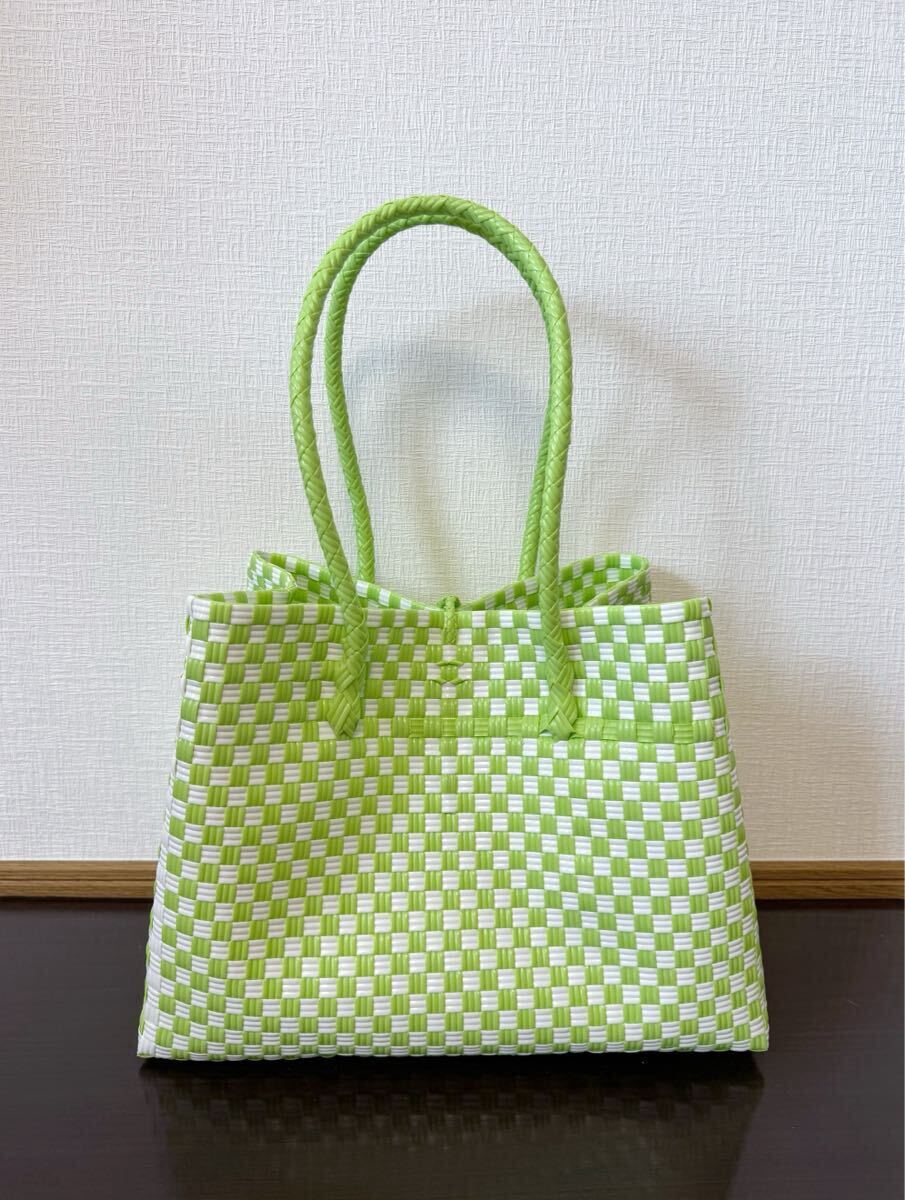 プラスチックの紐で編んでいる為、丈夫で長持ち、軽量