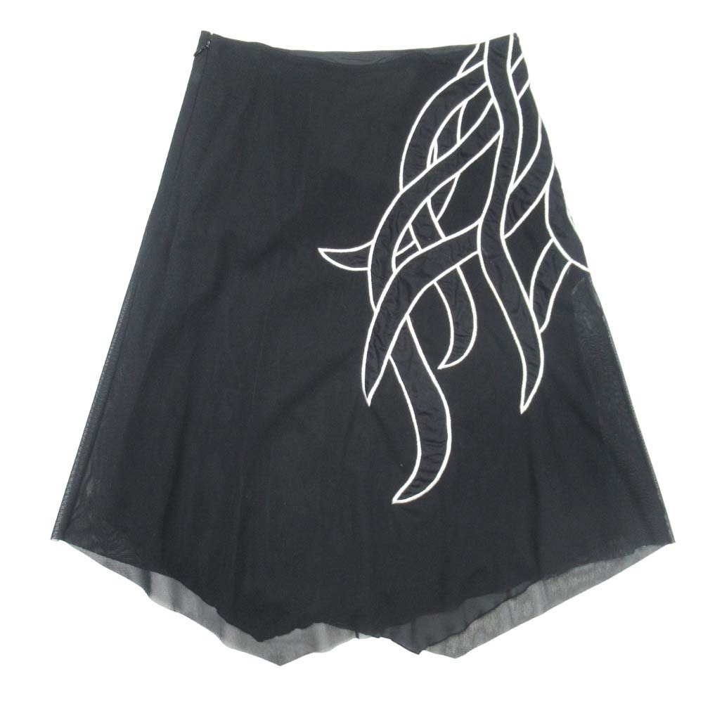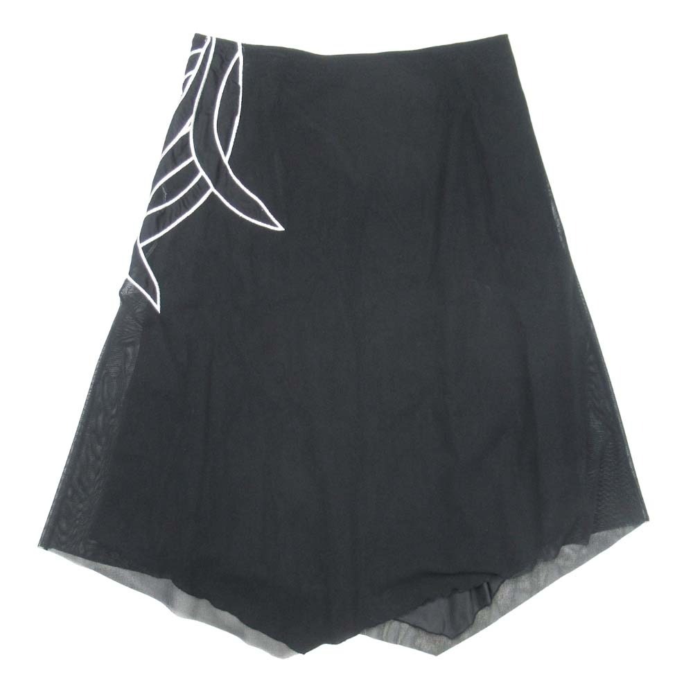 良品 VIVIENNE TAM ヴィヴィアンタム パワーネット スカート ランダムヘム チュール メッシュ 刺繍 膝丈 0 黒 ブラック