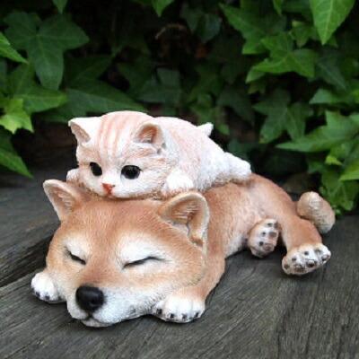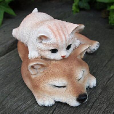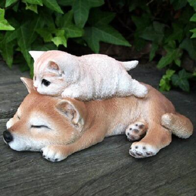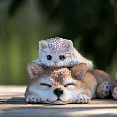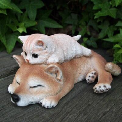 居眠りしている柴兄ちゃんの上で安心している子猫ちゃん。