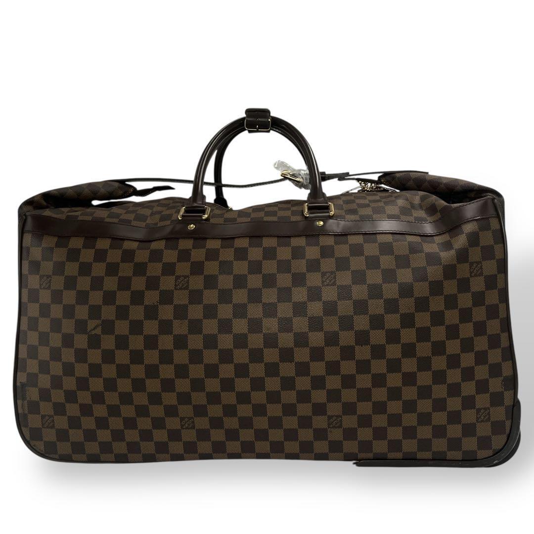 LOUIS VUITTON ブラウン PVCレザー 旅行カバン トラベルバッグ キャリーバッグ ゴールド金具 ロゴ刻印 南京錠 大容量 特大容量
