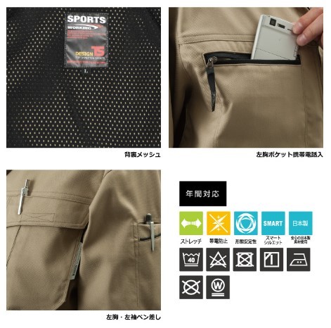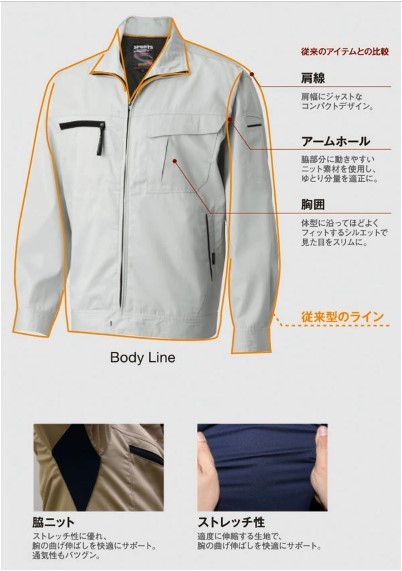 伸縮性抜群のストレッチバーバリー生地使用! 動きやすさを追求したデザイン! ★色・・・45ネイビー ★サイズ・・・L ★定価・・・9020円(1枚に付き) | |
