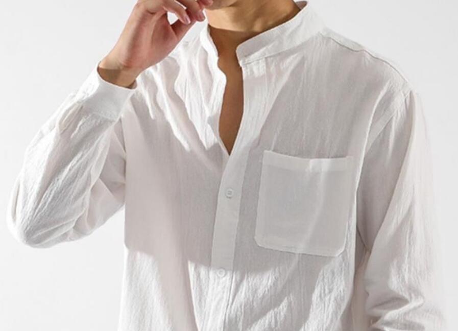 新作リネンシャツ メンズ 麻 シャツ 長袖 綿麻シャツ シンプル カジュアルシャツ 無地 欧米風 ゆったり 前開 秋新作 ホワイトXXXL