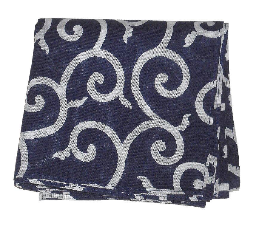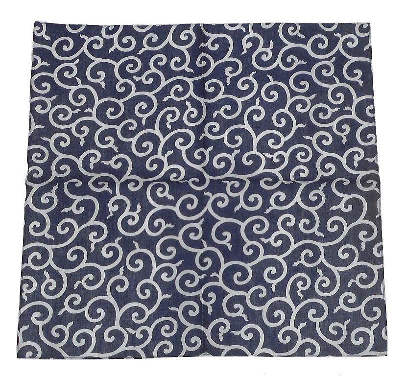未使用★日本伝統「繁栄・長寿」縁起モノ文様*バンダナ◆唐草文様◆濃紺ネイビー■50×51cm★綿100% コンパス生地