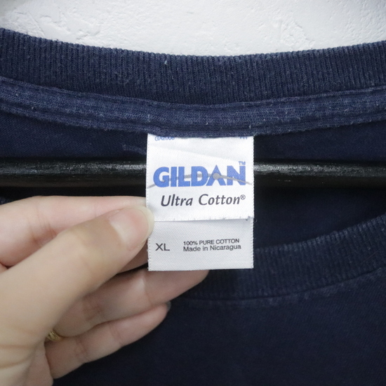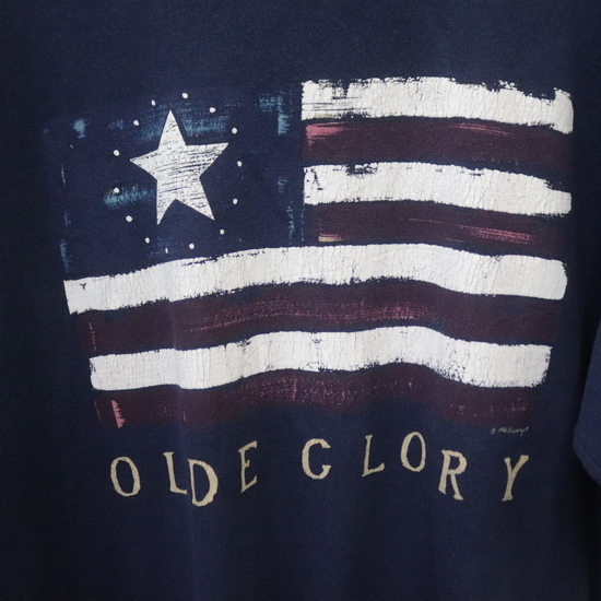 r14 2000年代製 GILDAN ギルダン OLDEGLORY プリントTシャツ■00s 表記XLサイズ ネイビー アメカジ ストリート 古着卸 80s 70s