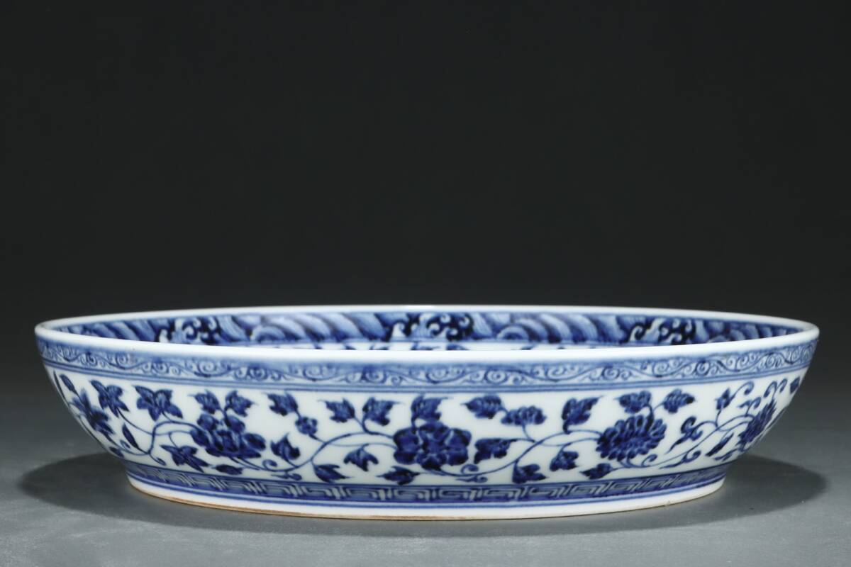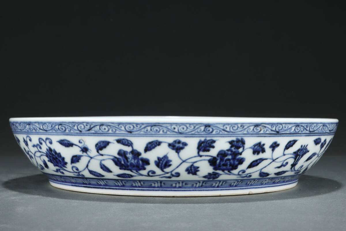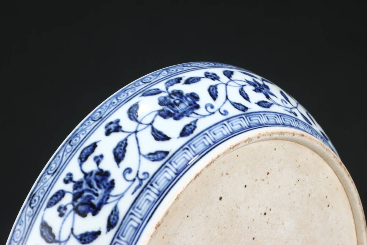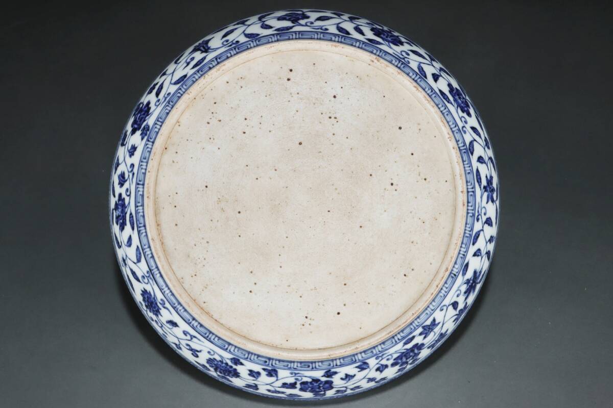 多宝閣 ■202311 中国磁器 中国骨董【松、竹、梅の模様が描かれた明代の青白磁の大きな皿】工芸品 施釉陶 陶芸 置物 收藏品 孤品
