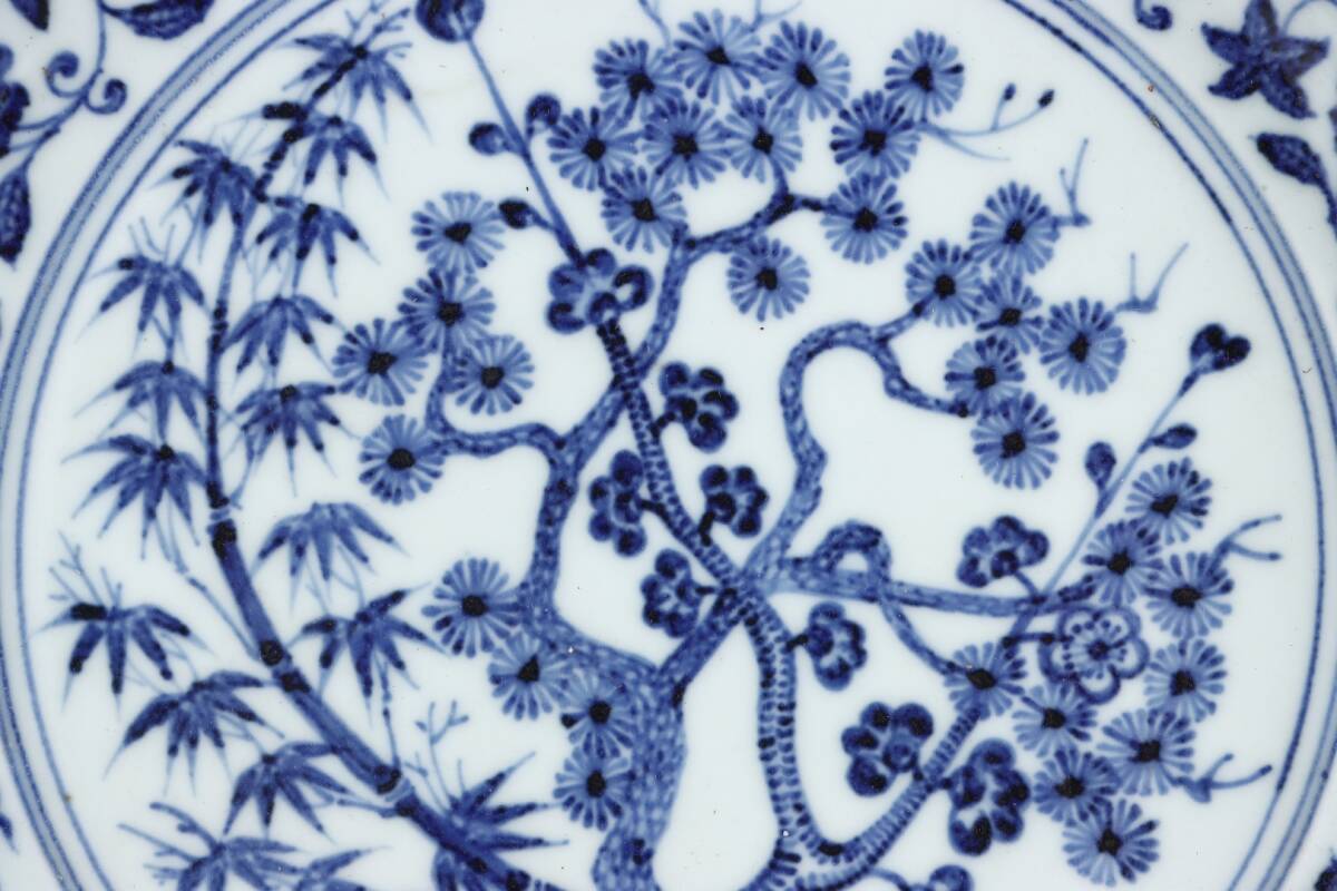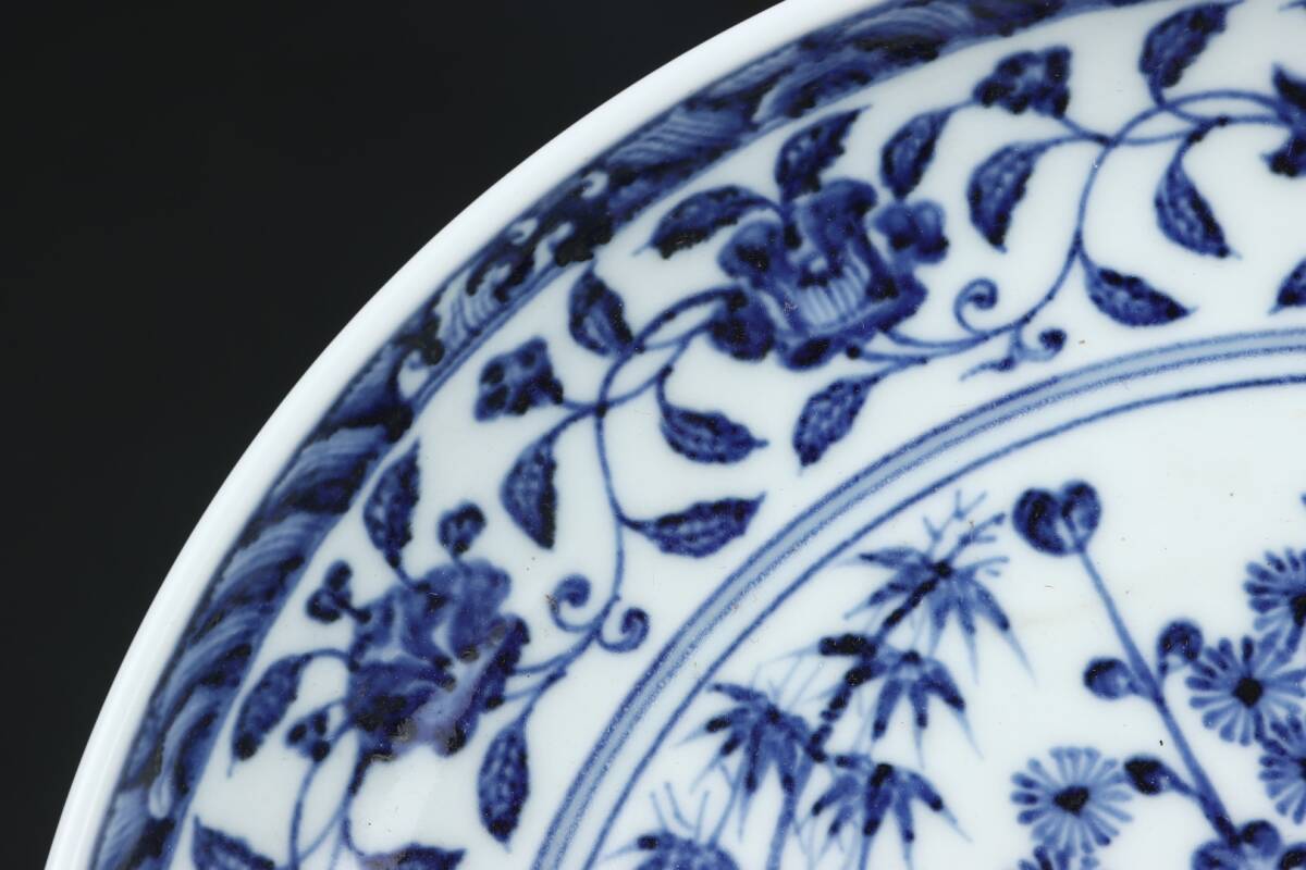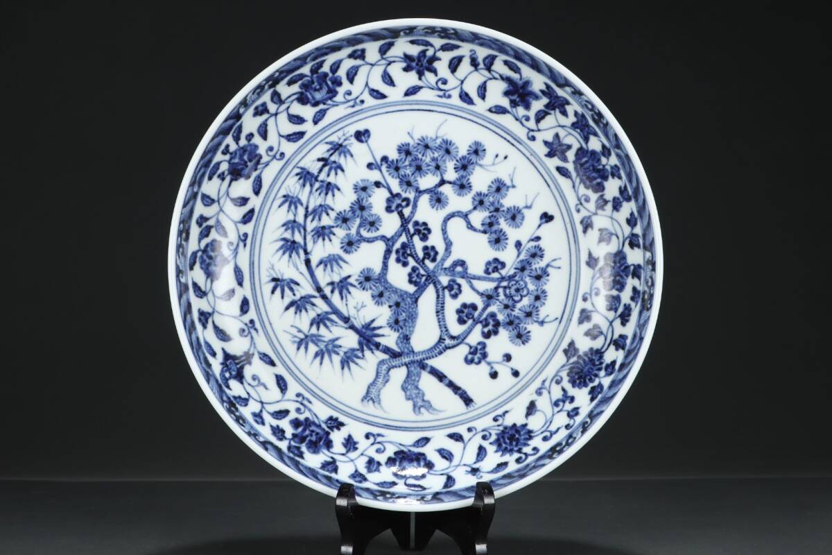 中国磁器 中国骨董【松、竹、梅の模様が描かれた明代の青白磁の大きな皿【インボイス登録済】工芸品 施釉陶 陶芸 置物 收藏品 孤品