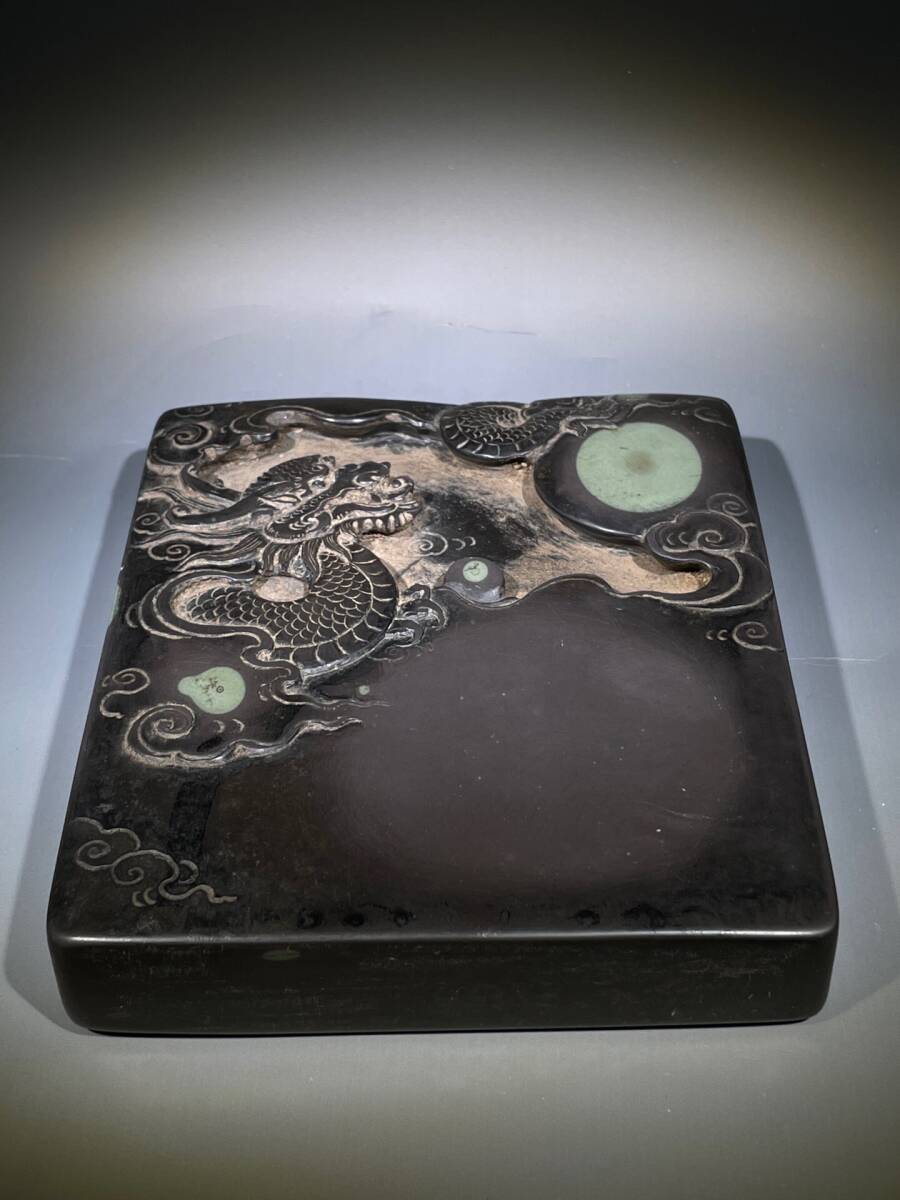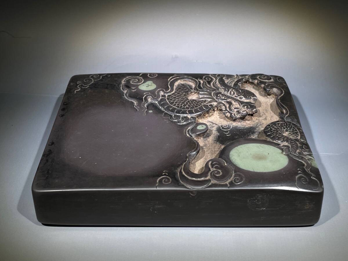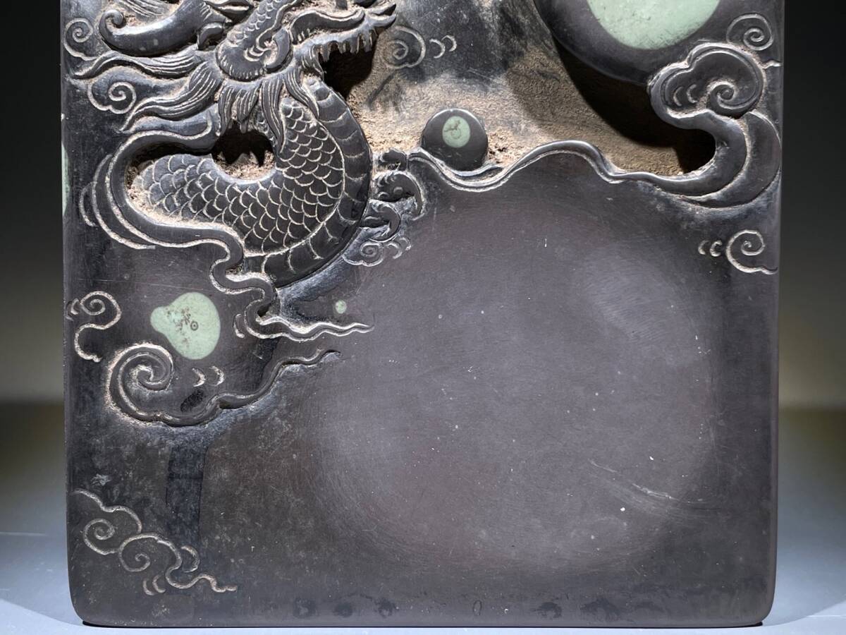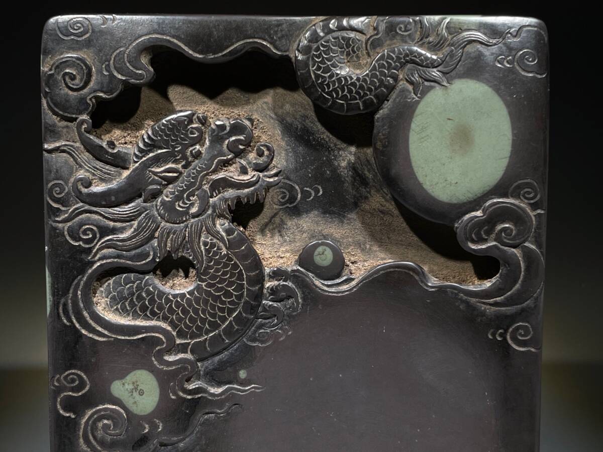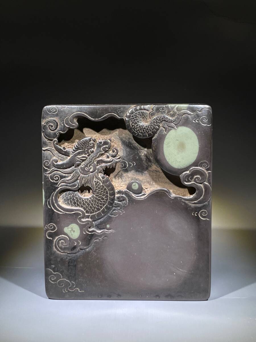 【超珍館蔵】飛龍望月紋硯台 端硯 文房具 書道品 置物 賞物 古賞物 古董品 古美術品 時代物 旧家蔵出 稀少珍蔵品