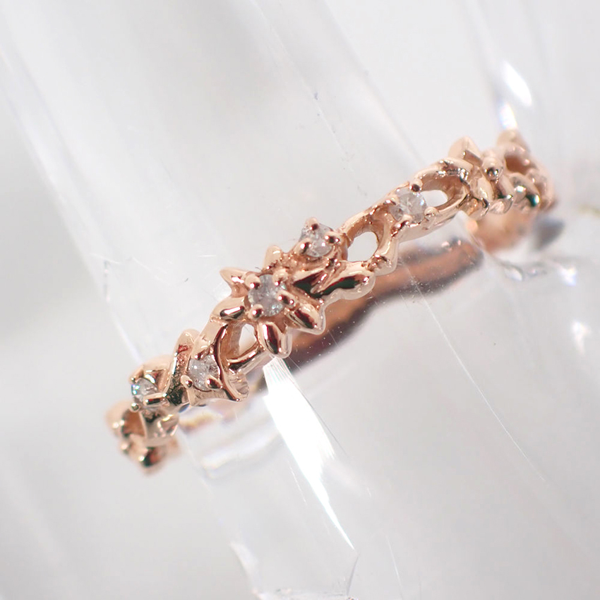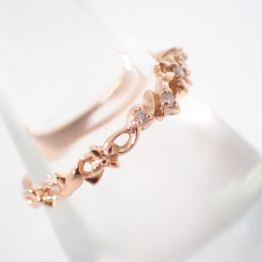 【中古】 K10PG /agete/ ダイヤモンド フラワー リング /13号/g522-81