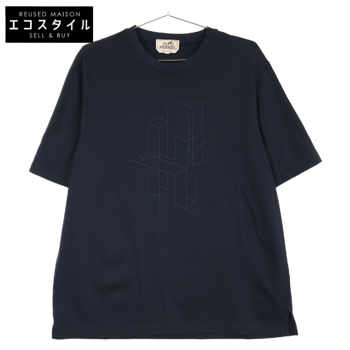 国内正規/ HERMES エルメス Hステッチ 半袖Tシャツ/ トップス S ネイビー メンズ