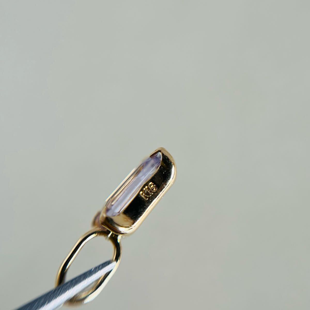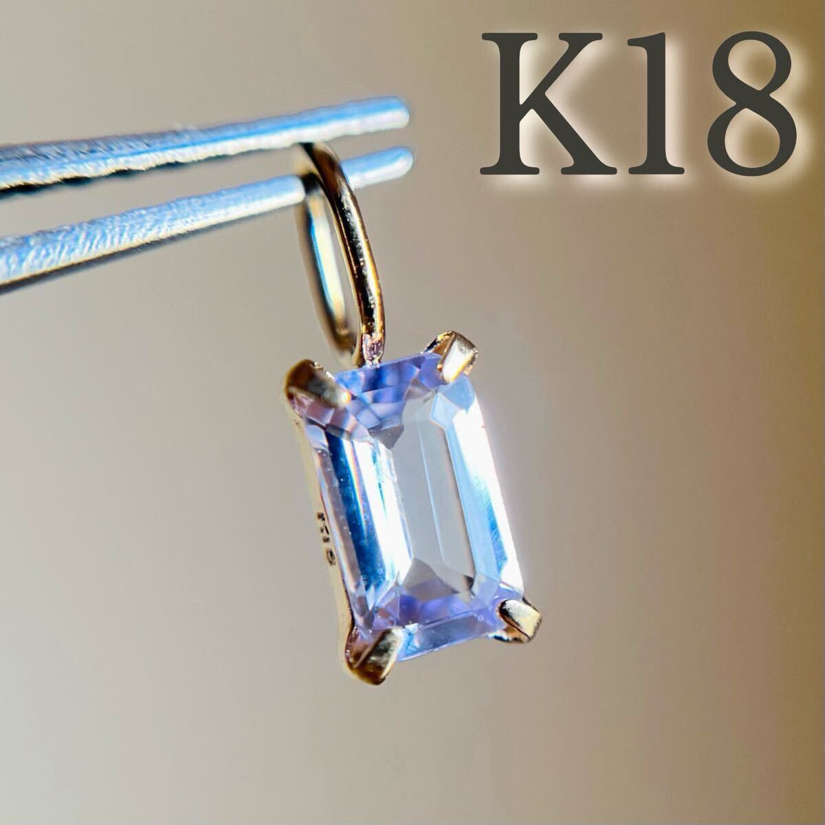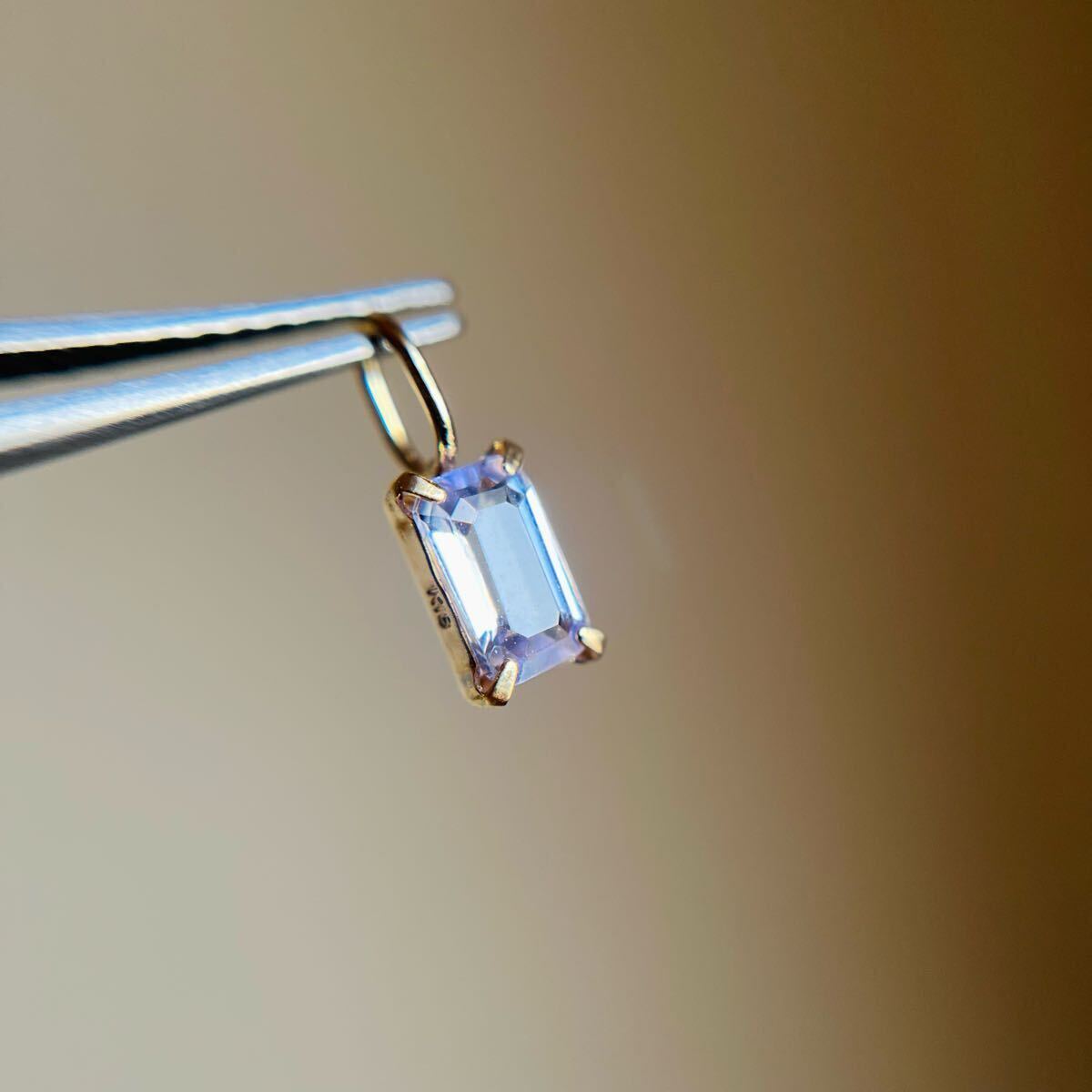 パープリッシュブルーがキラリと輝く天然タンザナイトのバケットカットのペンダントトップです。