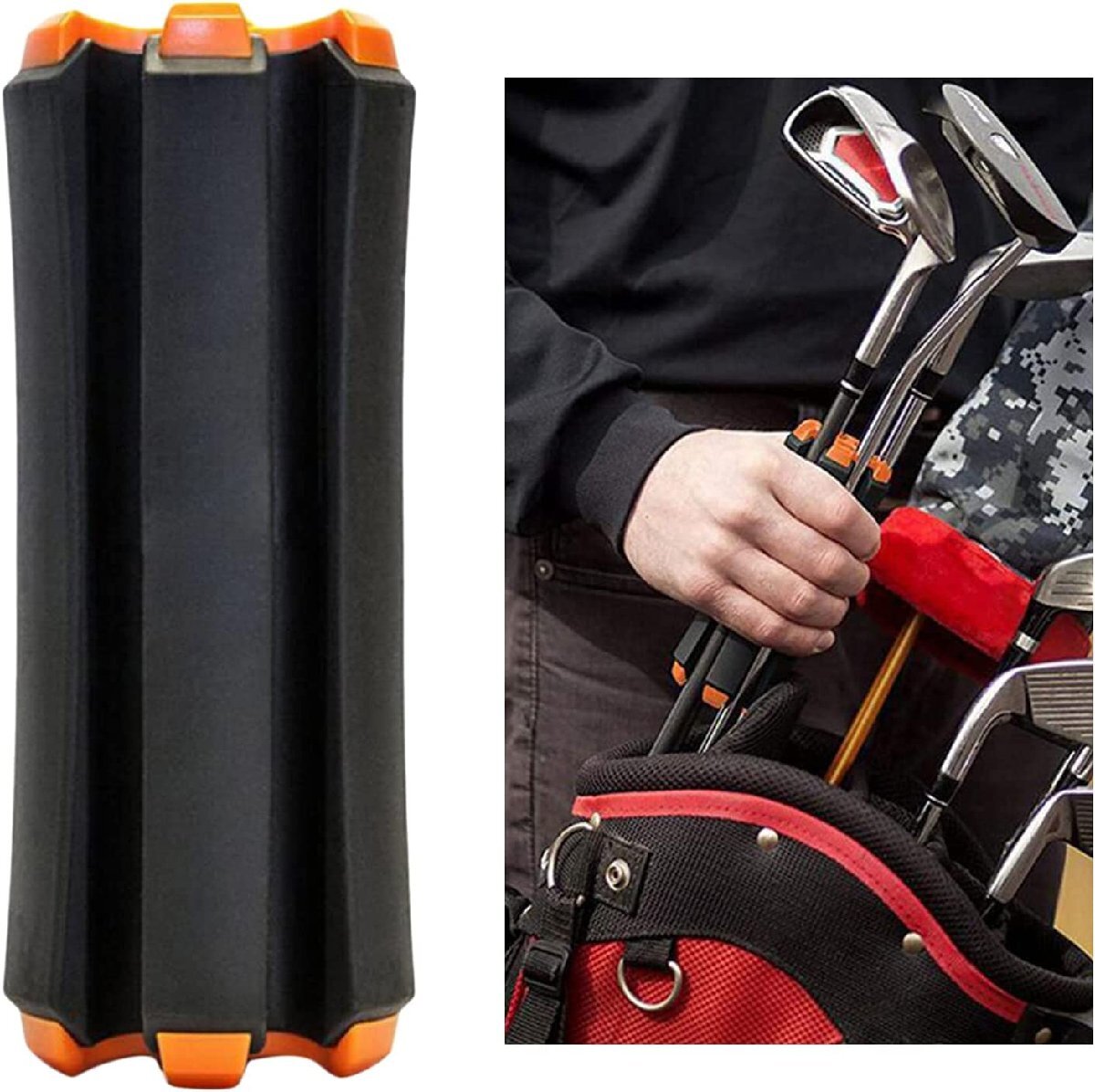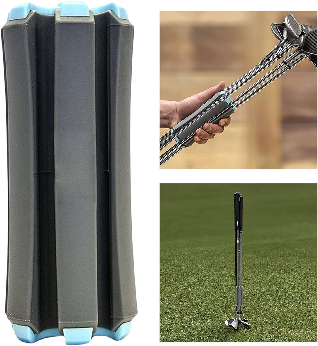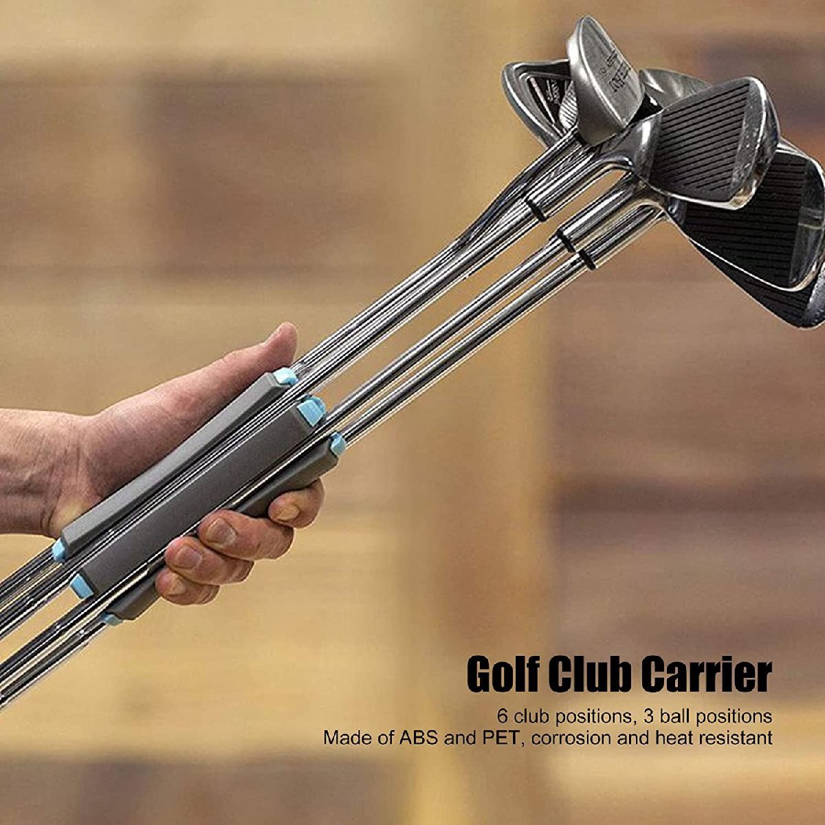 持ち運びラクラク!ゴルフクラブホルダー!●簡単に取り付ける事ができ、1度に6本クラブを持ち運ぶことができるコンパクトで便利な新しいおしゃれクラブキャリーケース。●セカンドからグリーン周りで使用するクラブを、セットしておくことでカートにも戻らずスピーディーなプレーができます。●クラブ干渉・汚れ防止!!最大で一度に6本まとめて持ち運びが可能!3本以上挿せば自立するので、そのままスタンドとしてもご利用いただけます。丈夫な作りで、小型で軽量なのでゴルフバックにも収納可能です!プレゼントとしても大変喜んでいただける品物です。【商品詳細】サイズ:6cm×14.5cm素材:ABS+PET 水や汚れに強く、拭くだけで綺麗になります。重量:約180g