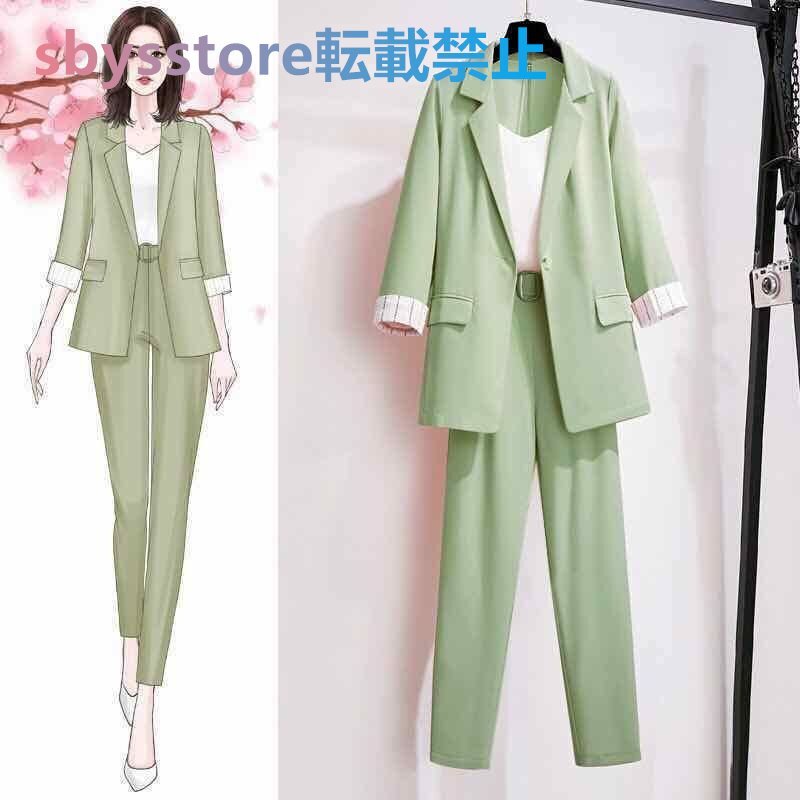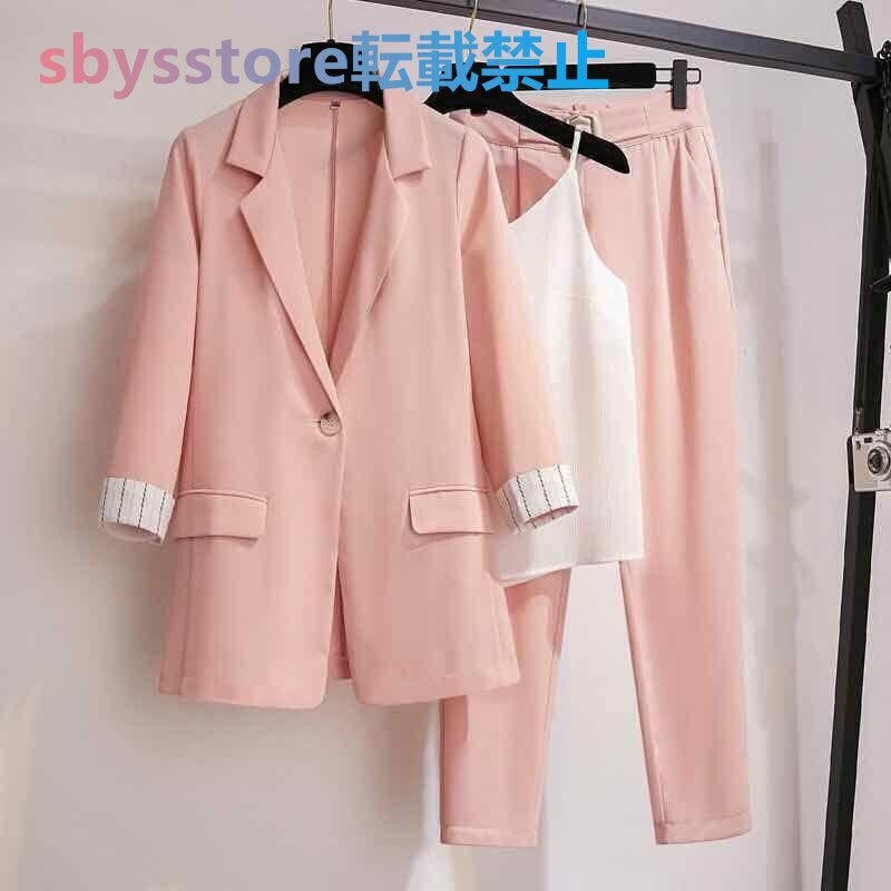 パンツスーツ レディース セットアップ 秋冬 上下セット 3点セット スーツジャケット ロングパンツ 通勤 入学式 卒業式 S~4XL