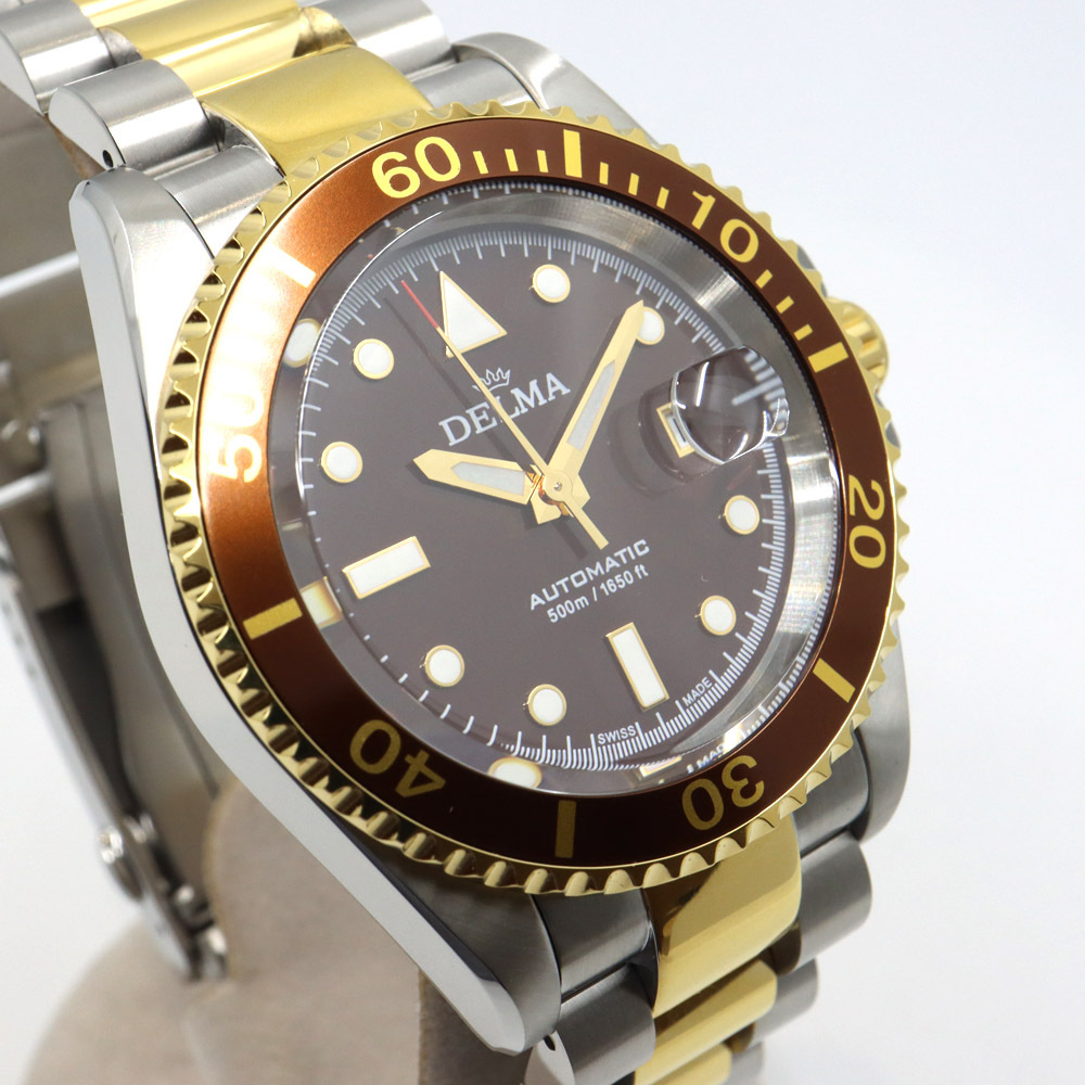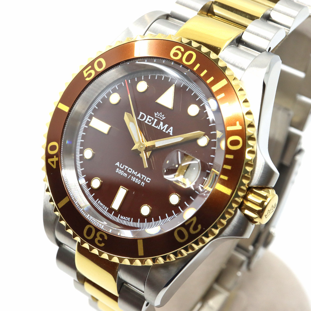【栄】デルマ コモドール 52701.690.6.101 ブラウン 腕時計 自動巻き SS GP メンズ