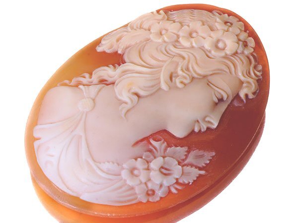 美しい女性と花を繊細に彫刻で演出した、素晴らしい高級シェルカメオルースです!