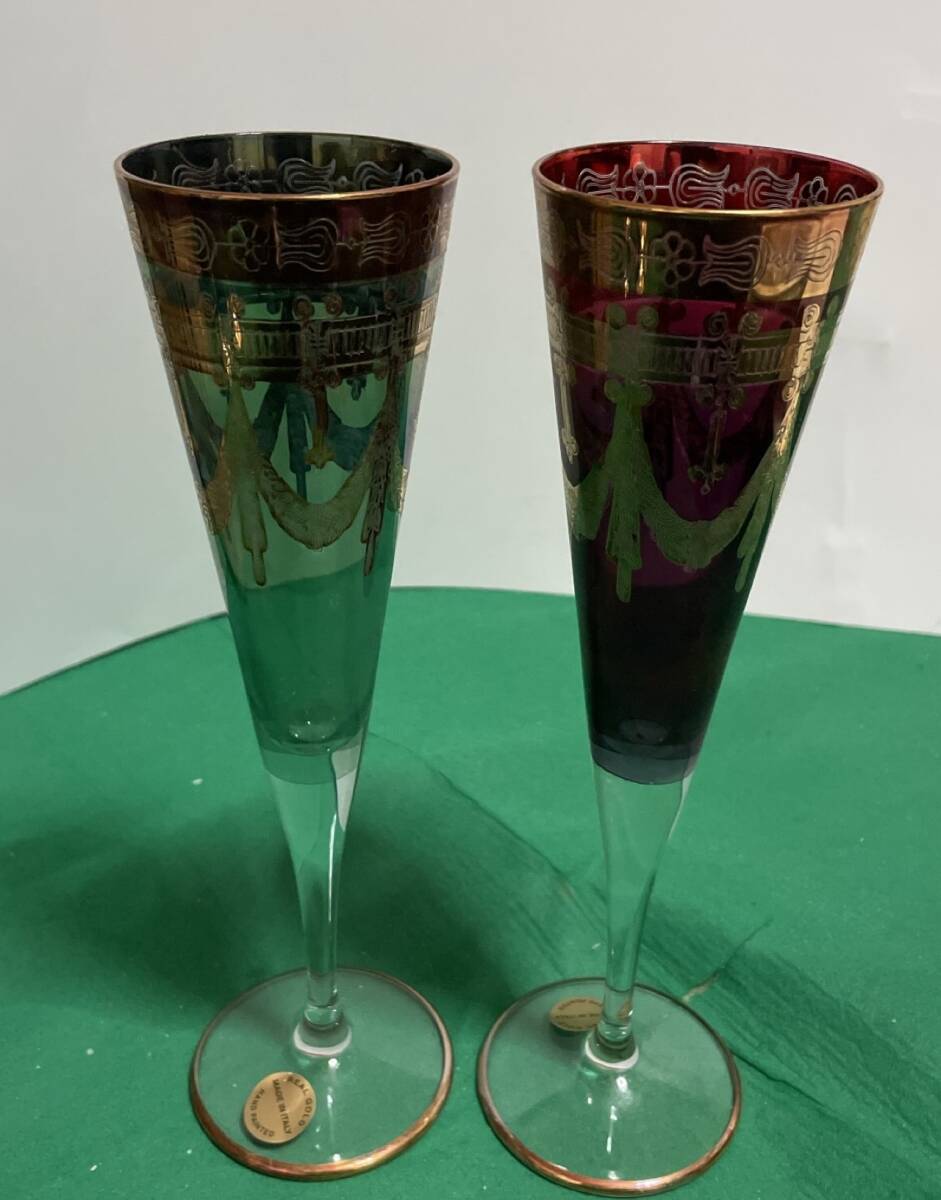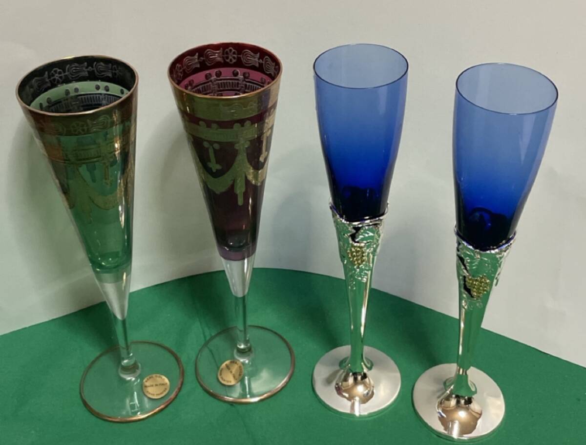 アンティーク  シャンパングラス/ブルーグラス/ ベネチアングラス4個セット