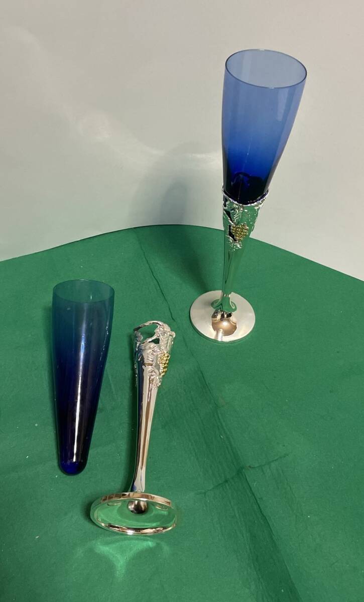 ブルーのシャンパングラスは、シルバー部分とガラス部分が分かれます。取り外し洗えます。