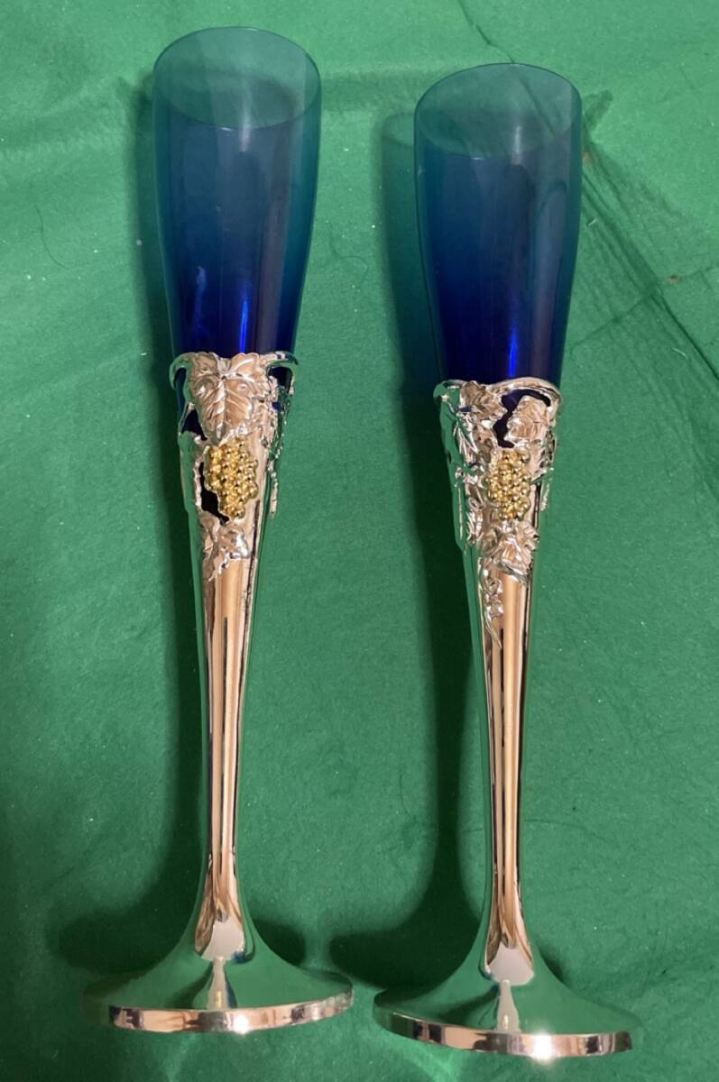 綺麗なブルーのシャンパングラスです。 ベネチアングラス?ボヘミアングラス?詳細は解りませんが綺麗で美しいグラスです。