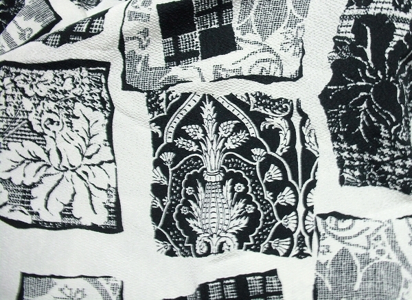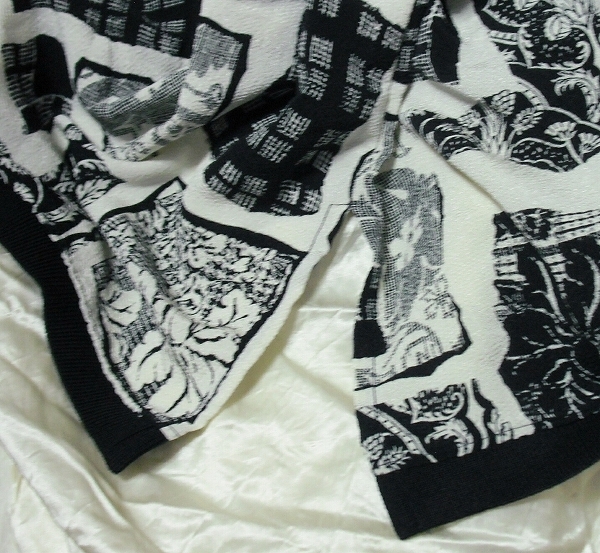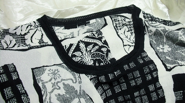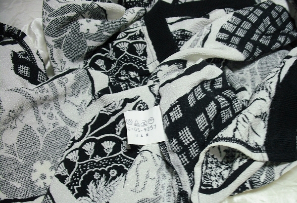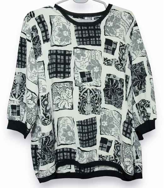 モノクロ 植物柄 プルオーバーシャツ 袖口リブ ゆったりサイズ メーカー不明 さすがの日本製 未着用