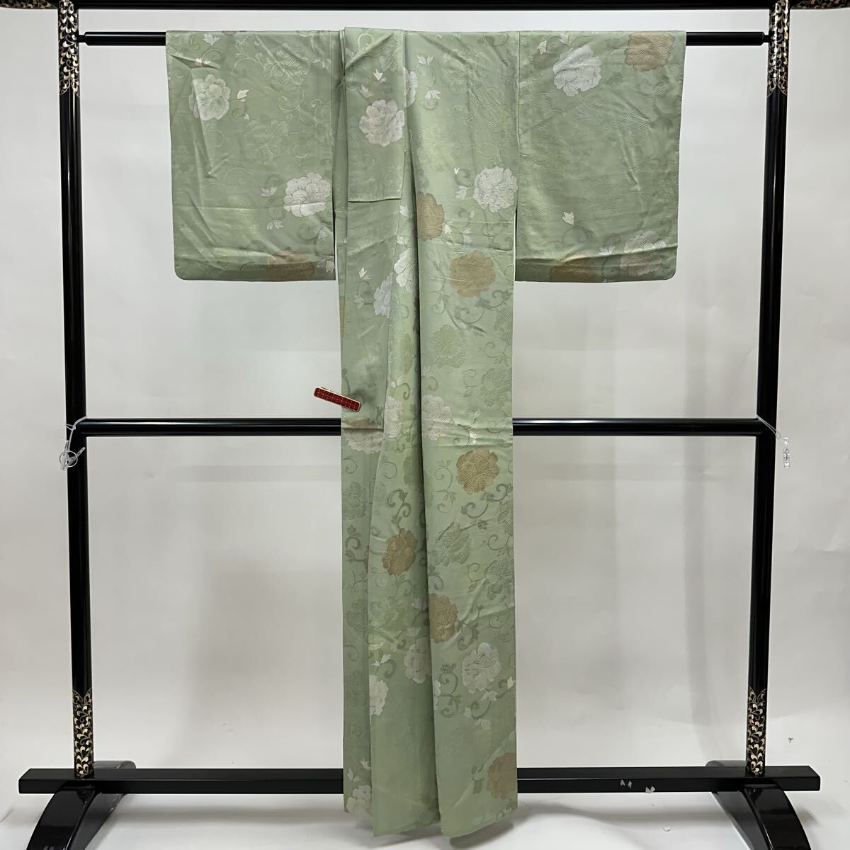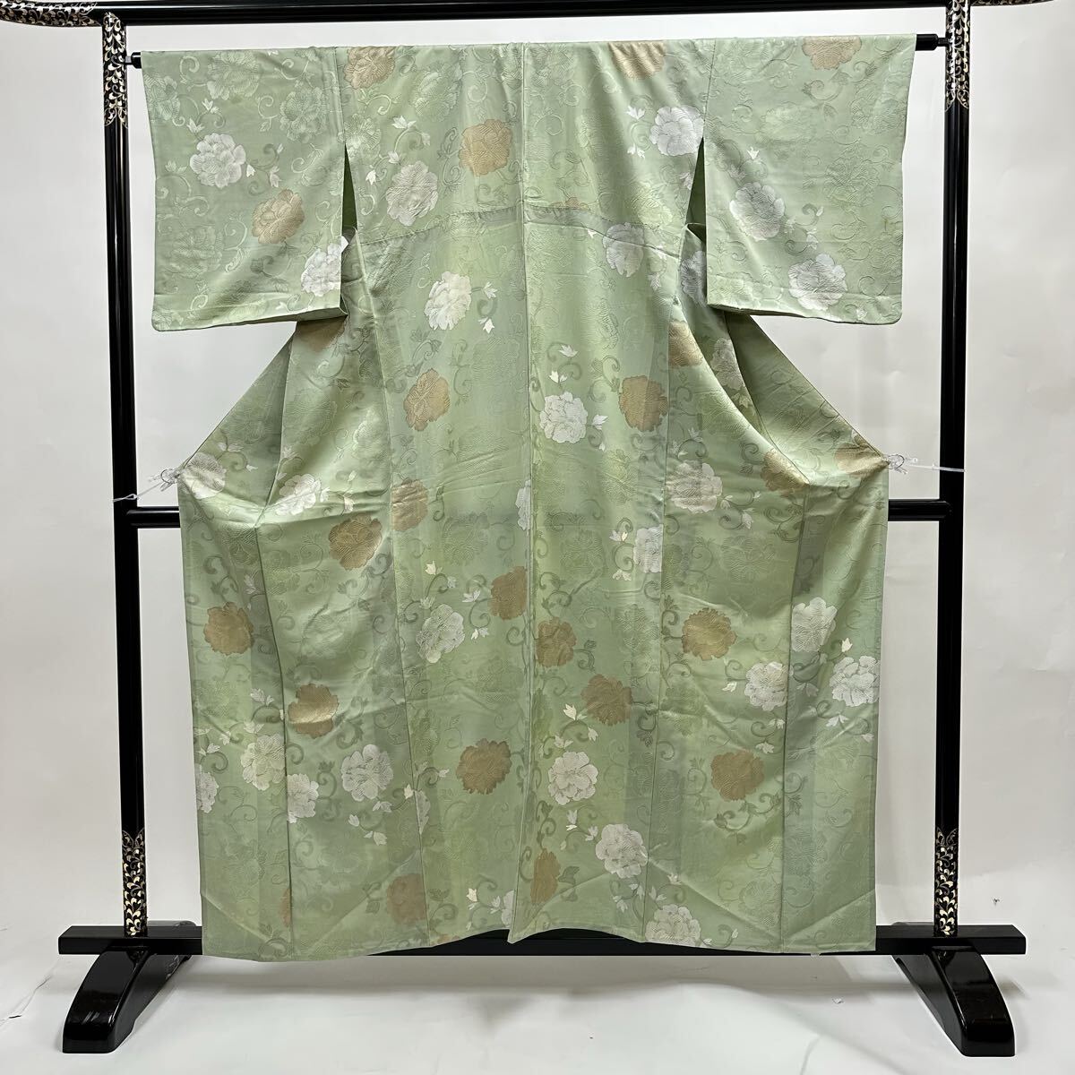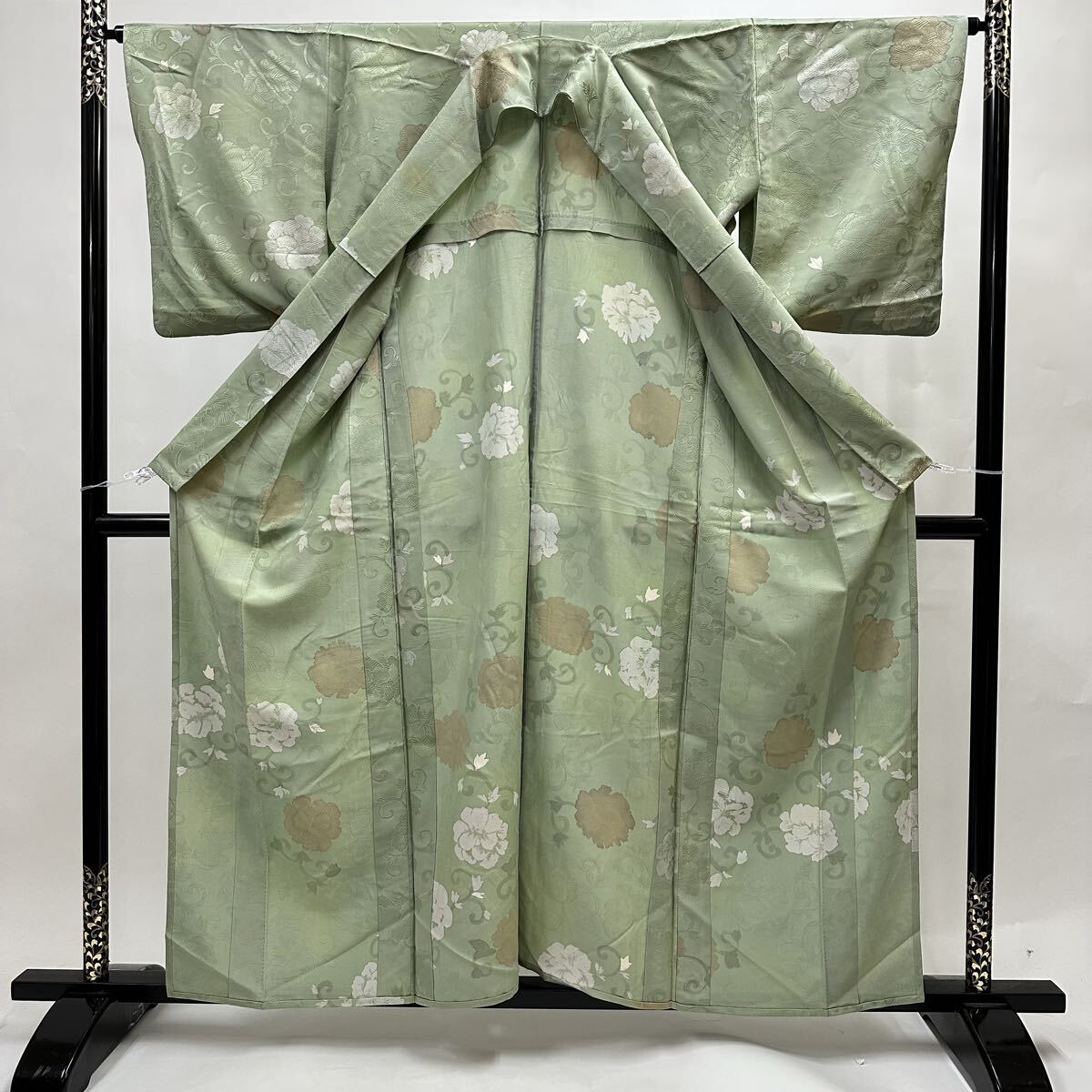 【七福】c719 正絹 小紋 地模様 織花 暗文 地文起こし 単衣 着物 仕立て上がり 逸品 身丈 約156.5cm 裄 約63.5cm