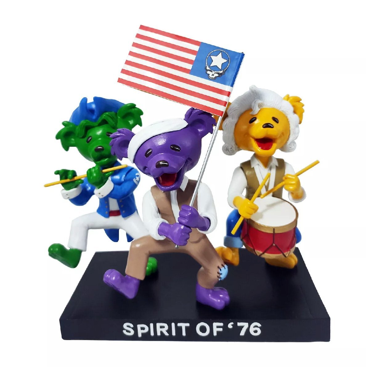 | Kollectico Grateful Dead Spirit of 76 Dancing Bear Bobblehead Set A MUST HAVE for Grateful Dead Fans! These Officially Licensed Grateful Dead Dancing Bear Spirit of ’76 Bobbleheads. • Officially Licensed by the Grateful Dead • Hand-Sculpted • 100% Hand-Painted • Only 1,776 made worldwide • Each individually numbered • Full Color Collector’s Box TOY グレイトフルデッドベア。 名前は聞いたことなくても姿は見たことあるのではないでしょうか! そもそもこのキャラクターはアメリカのロックバンド、グレイトフルデッドのファンが生み出したキャラクターですが、 そのグレイトフルデッドは1960年代、アメリカのヒッピー文化が発祥・流行期の代表ともいえるアーティスト、 観客動員数はあのビートルズをしのぐ世界NO.1なのです! 特にライブが伝説になっていて、会場で自由に曲を録音していいのです! それくらい自由度の高いグレイトフルデッドにはライブやツアーを支え続けた熱心なファンが多くデッドヘッズと呼ばれています。 そのデッドヘッズがツアーの最中に創ったのがこのグレイトフルデッドベアだと言われています。 つまり、グレイトフルデッドベアは1960年代カリフォルニアの乾いた地を駆け抜けたサイケデリック魂が具体化したものと言ってもいいのです。 アメリカ独立戦争を取り巻く時代精神に代表される愛国的な感情を描いた、アーチボルド・ウィラードによる絵画「Spirit of 76」に扮するダンシング・ベアーがボブルヘッドで降臨!! 2020年代であるからこそ、50年以上前のサイケデリックカラーと独立精神がパワーを与えてくれるのだと感じさせられます。 『History of the Grateful Dead, Volume One (Bear's Choice)』(1973) をプロデュースしたオウズリー「ベアー」スタンリー談...「アルバムカバーの熊は、本当は『ダンシング』ではない。彼らは行進しているのだ」 お送りする物は未開封品となります。 高さ:約21cm レジン製 限定1776体 新品・正規品 ラッキー13、セーラージェリー、スラッシャー等~アメキャラ、企業ロゴ等ライセンスTシャツ、ラットフィンク関連品、バンドTシャツ等取り扱っております。 ** 他にも色々出品中です。 CWBG cwtoy IWot | |||||||