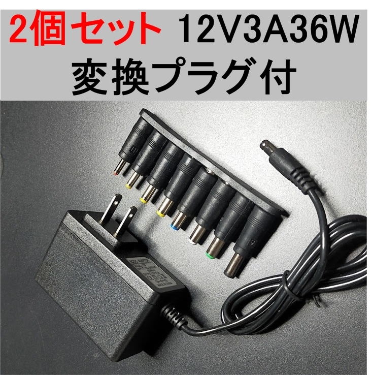 2個セット 汎用 ACアダプター 12V3A 変換プラグ付です