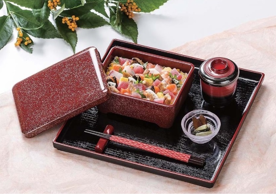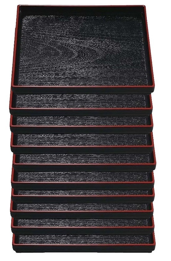 ☆業務用漆器正角木目盆黒天朱8寸(約242X242mm)10枚越前塗日本製