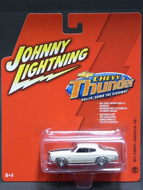Johnny Lightning☆1/64 Chevy Thunder☆Release 5 1971 Chevy Chevelle SS コレクション整理のため出品します パッケージに入った画像はパッケージに戻した状態の画像です 通常 中古の状態の良いものを ルース 悪いものを ジャンク と呼んでいるようです ダイキャストボディ ダイキャストシャーシ です ボンネット開閉 スケール 1/64 |
