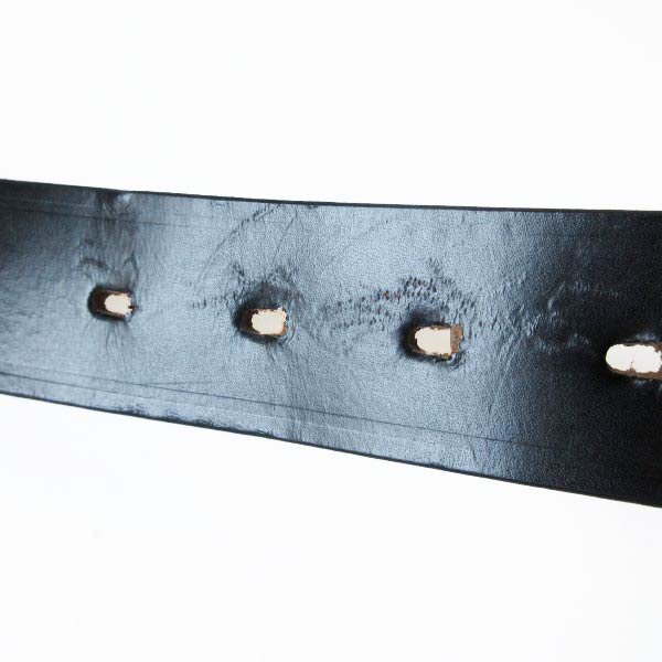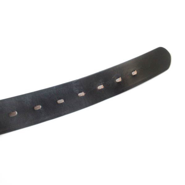 メカニックベルトとも呼ばれるバックル表側に金具が出ていなく、内側のフックで穴に引っ掛けて使用する作り。